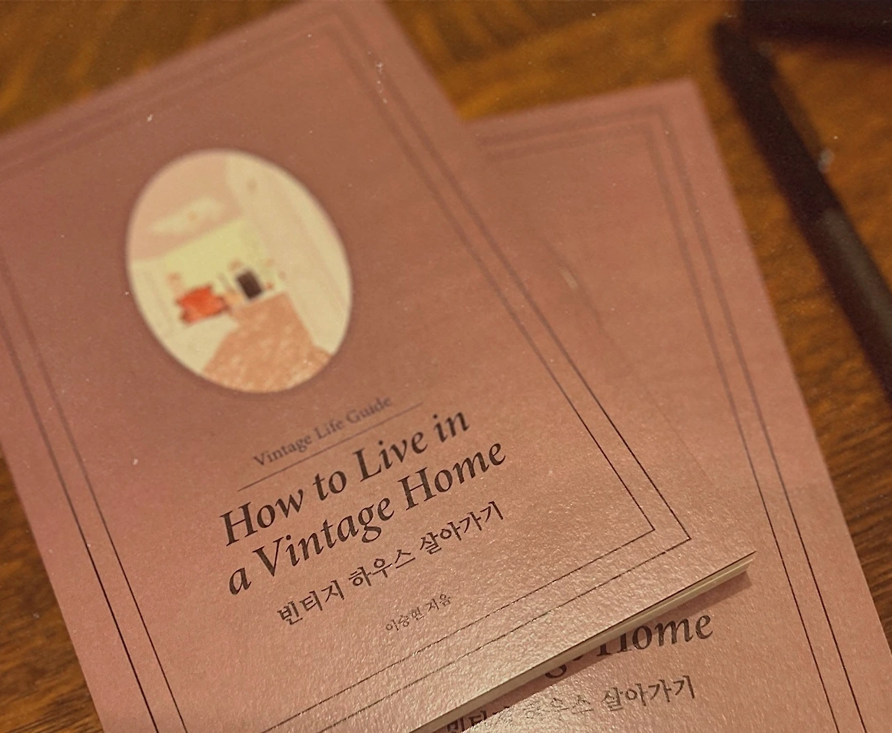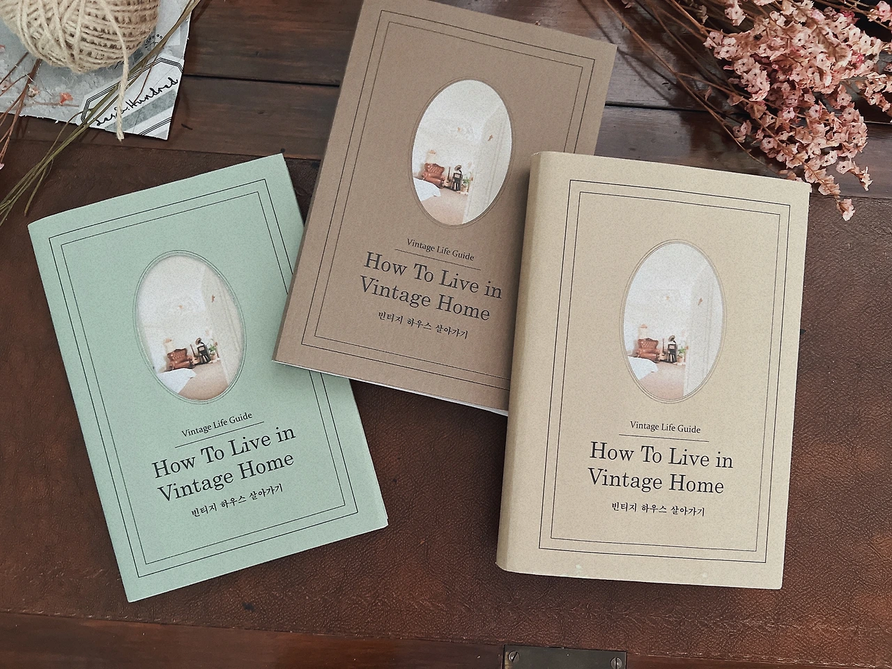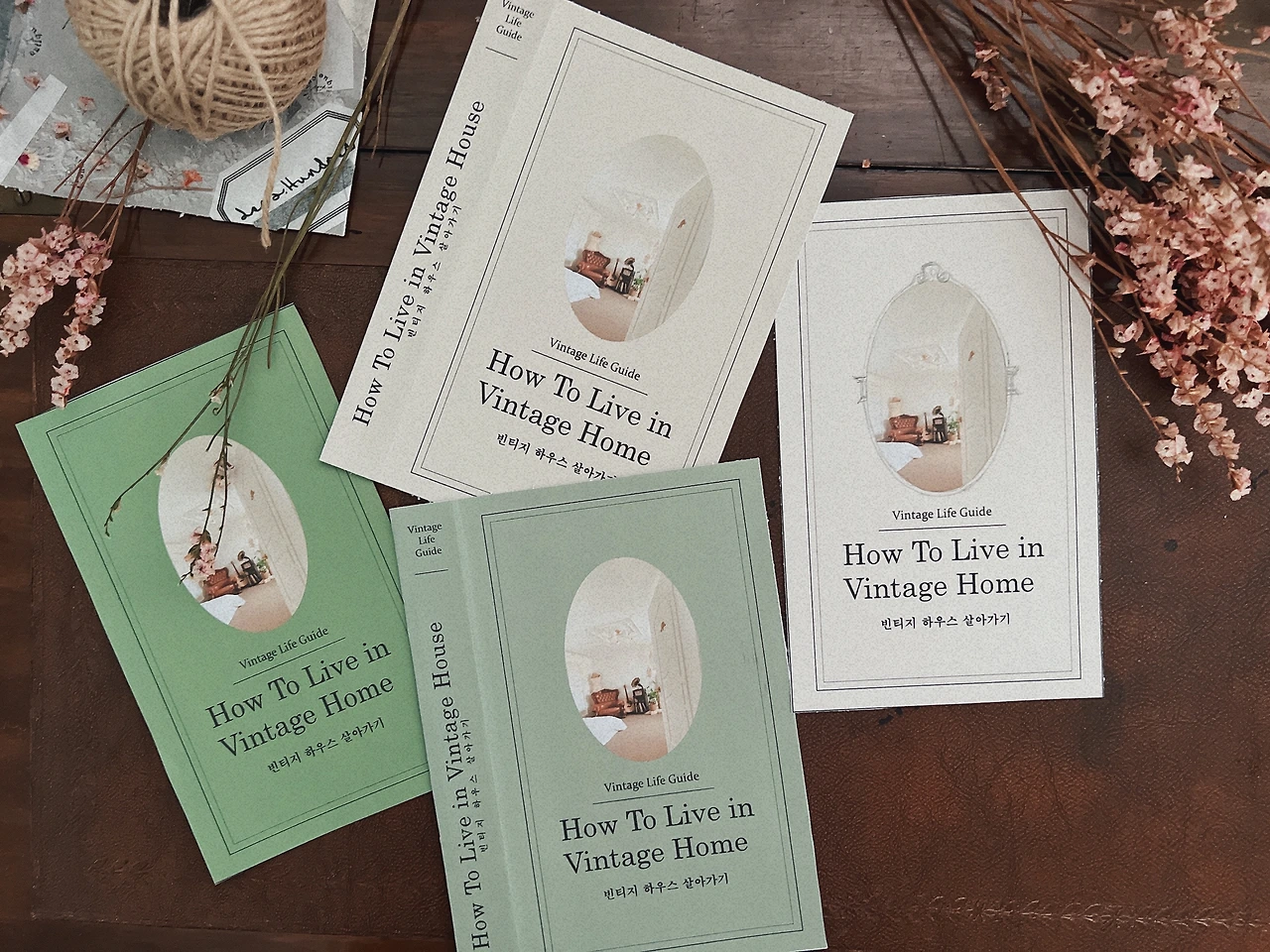 영감을 받은 디자인으로 제작한 샘플북들. 책의 가운데에는 침실 드로잉을 넣었고, 빈티지한 폰트를 삽입했다. 너무 앤티크 하지 않도록 선은 심플하게. 사실 포켓사이즈의 소프트 커버북은 책의 날개도 없는 게 리얼한 느낌인데, 이 경우 책커버에 구멍을 넣지 못할 것 같다. 표지에 구멍을 내는 것 역시 견적과 제작 문제에 맞닥뜨렸다. 아무래도 구멍을 내려면 작은 구멍밖에 안 되는데, 그림을 좀 더 크게 보여주고 싶어진 것.