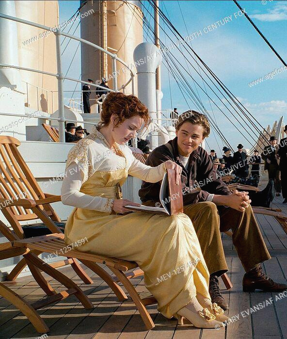 1912년 침몰된 타이타닉호를 영화화한 타이타닉에서는 상류층 여성들의 화려한 의상을 볼 수 있다. 케이트 윈슬렛이 쓴 챙이 큰 모자라던가 여사의 깃털 헤어 장식, 긴 실크 장갑, 그리고 짧은 목걸이들.
