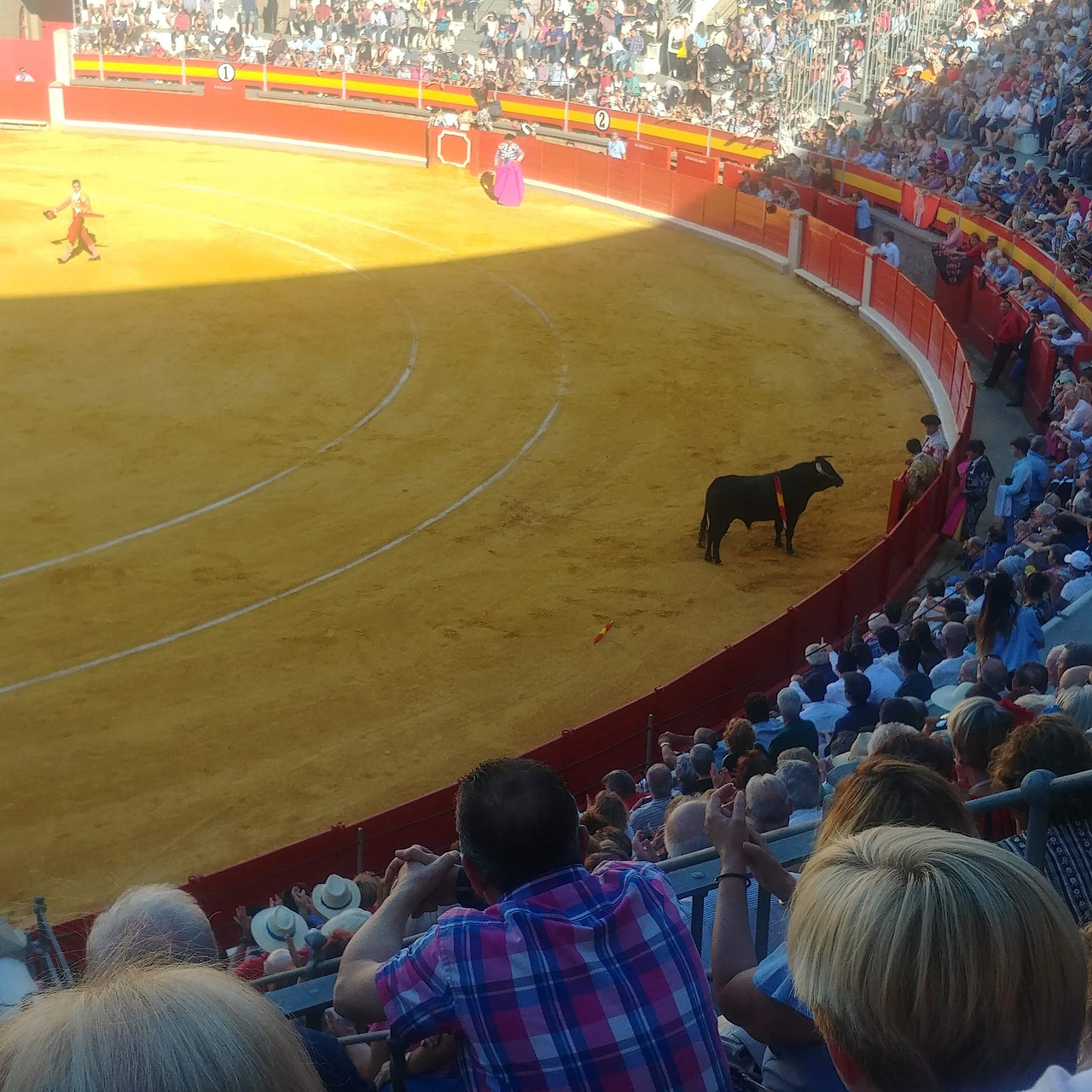 가장 충격적인 장면이 몇 군데 있었는데, 첫째로는 몇몇 아이들이 어른과 똑같이 환호하며 이 '스포츠'를 즐긴다는 점. 사실 관중들은 성별, 나이 구분 없이 다양하게 구성되어 있었다. 가족단위의 관중들도 많았고, 어른들은 술을 마시며 야유도 하고 고래고래 소리도 지른다. (우리나라의 야구경기장 풍경과 크게 다르지 않다). 그런데 아이들조차도 투우사가 황소의 머리 뒷목을 찌르고 피를 플릴 때, 어른들과 함께 환호하며 응원을 했다. 동물을 죽이기 위한 목적의 스포츠를 어릴 때부터 즐기도록 아이들을 방치해도... 정말 괜찮은 일일까?