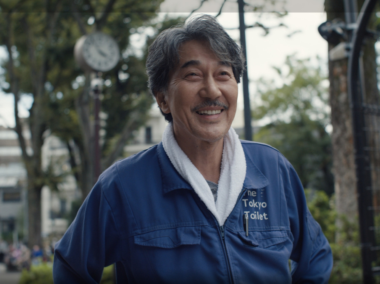 아침에 일어나서 이부자리를 정리하고 식물에 물을 주며 출근 준비를 하고선 집을 나선다. 이동하는 내내 그의 차 안에서 들리는 화면을 가득 채우는 올드팝은 편안하고 반갑다. 도시 한복판에 있는 공공화장실인 일터에 가서도 그는 조용히 그의 장비를 챙겨 자신의 맡은 일을 묵묵히 수행한다. 어차피 더러워질 것이니 대충 하라는 동료의 말이 부끄러울 정도로 그의 일에 열심이다. 그런 말쯤에 개의치 않고 깔끔하게 장인 정신 가득한 청소를 끝내고 퇴근길에 그는 늘 목욕탕에 들른다. 기분 좋게 땀을 내고 깨끗이 씻은 후, 야무지게 음료까지 챙겨 먹으며 노곤한 몸을 이끌고 자신의 단골 선술집으로 향한다. 간단한 식사와 술로 하루의 피곤을 풀고, 아는 얼굴들과 정겨운 대화 몇 마디와 적절한 온도의 눈빛을 주고받고는 그제야 집으로 향한다. 집에 가서도 별다른 특색은 없다. 자기 전에 읽고 싶은 책을 편한 자세대로 읽다가 잠이 든다. 그리고 다음날이 밝았다. 다음날도 복사해서 붙여 넣기 한 것처럼 같은 일상이다. 큰 사건 사고 없이 단출하게, 영화는 내내 이렇게 진행된다. 그런데 그의 삶의 패턴을 가만히 보고 있노라면, 그 모든 행위들이 자신에게 주는 선물처럼 따뜻하고 기분 좋게 느껴진다. 적당한 거리를 유지하며 적절한 온도로 우리에게 다가온다. 그래서 편안하다.