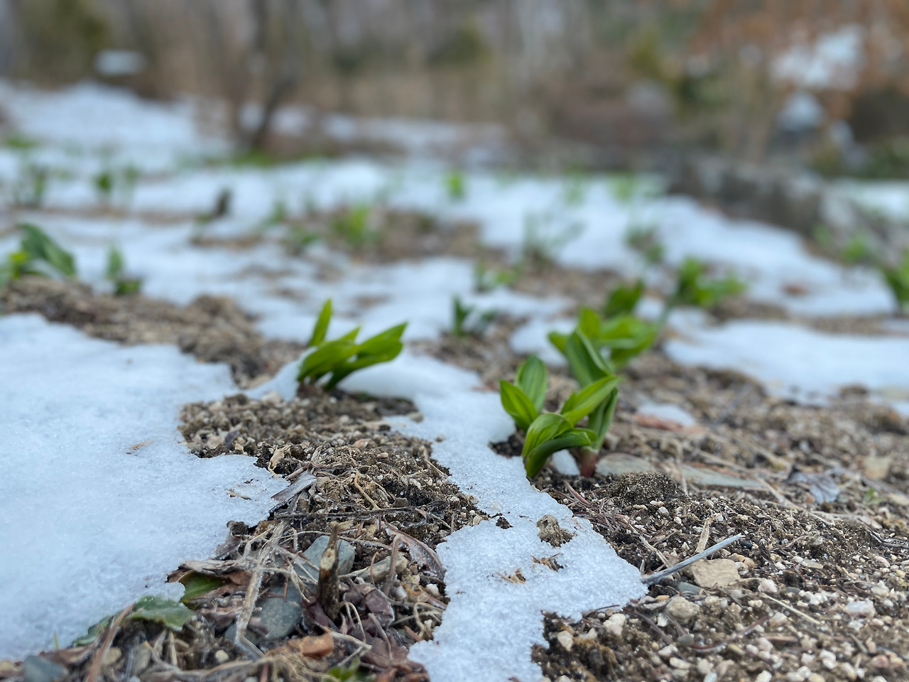 이번 봄은 춥디 추웠다. 아니 훼이크랄까. 봄이와 따뜻해지는 줄 알았는데 다시 겨울이 왔다. 아닌 봄중에 눈이라니.. 이 눈에 올라오던 많은 나물들은 이 추위를 버티어 내느라 고생 좀 한 것 같다. 몇몇 방풍은 처음에 난 잎 몇몇이 이미 얼어 말라버리기도 했으니. 그러나 그 와중에도 당당히 푸르름을 자랑하는 이가 있었으니 바로 명이였다.