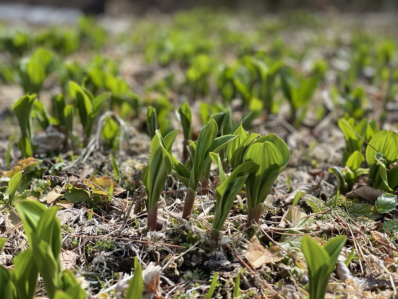 명이는 잎이 두장 혹은 세장 정도. 채취하다 보니까 네장 짜리도 있는데, 아마도 오래 자라다보면 잎 수가 좀 늘어나기도 하는 모양이다. 잎이 세장 나오자마자 꽃대도 함께 같이 올라온다. 이 꽃대가 올라오기 직전이 아무래도 딸 시기랄까. 영양분이 잎의 성장에 집중을 하다가 꽃의 성장으로 갈아타기 직전에! 명이는 잎이 두세장 정도 밖에 나오지 않는데 그중에서도 한장은 남기고 따야한다. 그래야 남은 한 잎으로 광합성을 해서 꽃을 피우고 또 그 다음 생을 이어가는 것이니까. 그래서 명이잎이 귀하다 하셨다. 딸때는 항상..욕심부리지 말고, 내가 필요한 만큼만... 을 생각하면서...