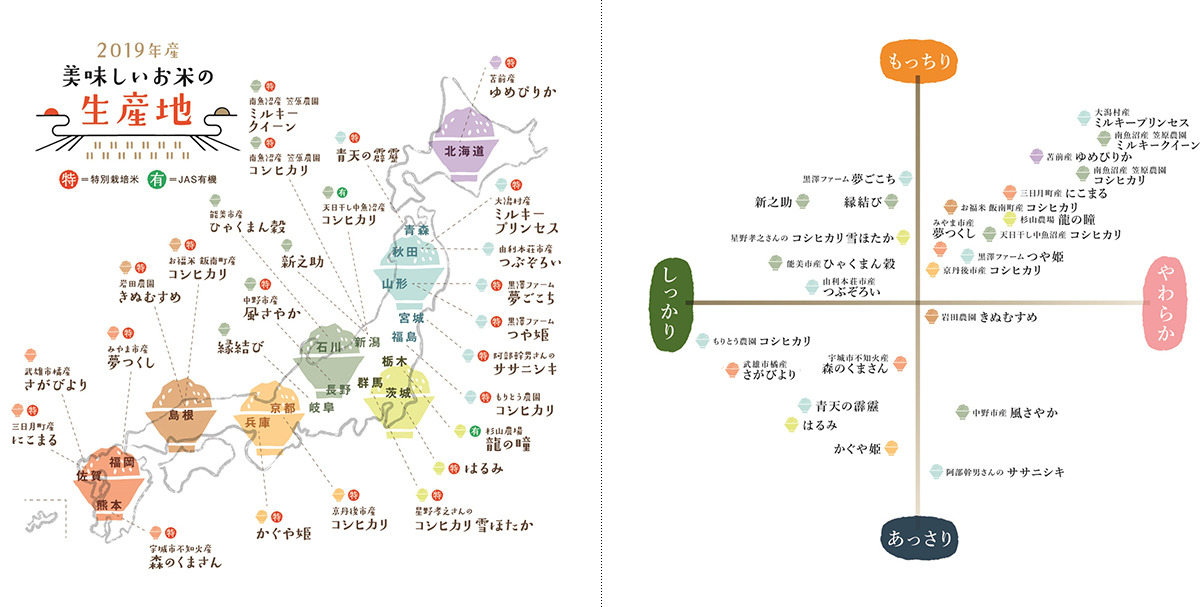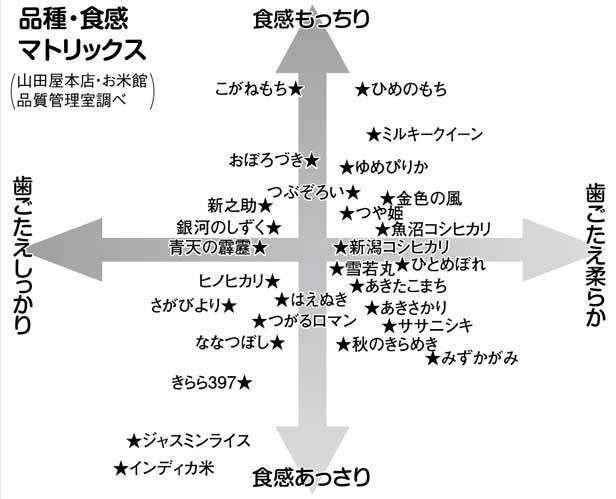 일본은 어떤 밥을 맛있는 밥으로 생각하는 것일까? 일본은 매해 일본곡물검정협회에서 각 지역에서 생산된 쌀을 20명의 전문가들이 외관, 향, 맛, 찰기, 단단한 정도를 보고 등급을 매겨 순위를 발표한다. 이 20명의 전문가들은 쌀 마이스터, 쌀 소믈리에, 쌀 어드바이저 등 각 협회에서 발행한 자격을 갖추거나, 쌀의 생산 유통 등에 오래 종사한 사람들로 구성한다고 한다. 각 전문가들은 각 항목의 쌀의 특징을 종합하고, 최근 찰기와 감칠맛을 추구하는 트렌드를 반영하여 순위를 매긴다.