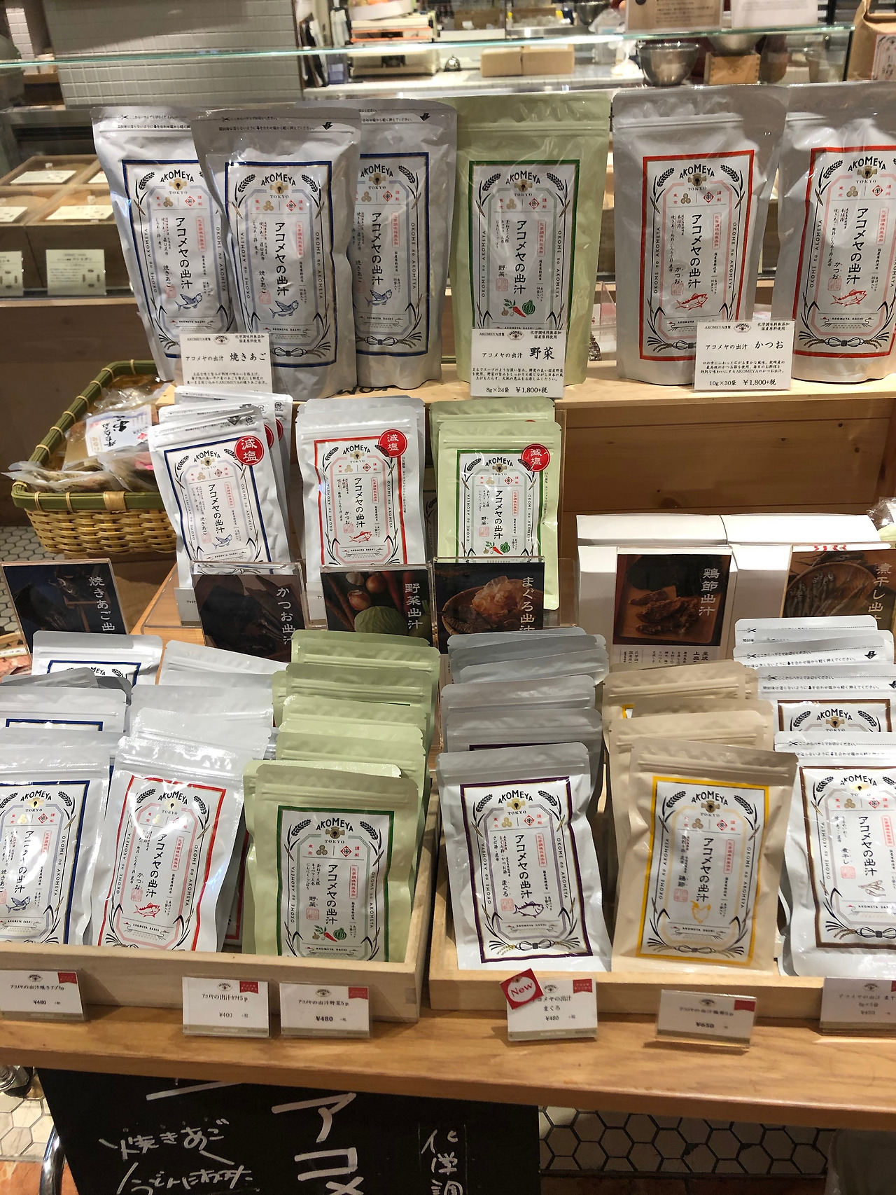 쌀에서 고개를 돌려 주변을 돌아보니 여기 뭐하는 집이지? 싶었다. 육수, 반찬, 조미료까지 비슷한 디자인 패키지는 아코메야 기획 상품이겠고, 아닌건 소싱한 제품이겠는데... 응 여기 쌀집 이라지 않았나? 밥이랑 같이 먹을 수 있는 모든 걸 갔다놨네? 으.... 정신없어... 하루종일 일본의 다양성에 지쳤던 나에겐 정신없음으로 다가왔던 1층을 뒤로 하고 2층을 올라갔다.