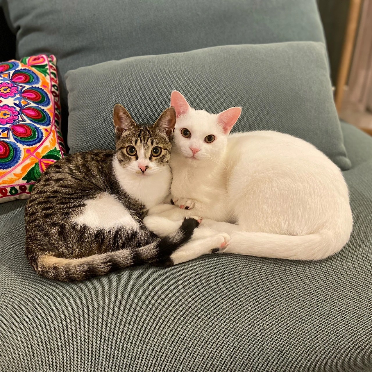 제 옆에 있는 고양이는 치나입니다. 점점 늠름하고 섹시해지는 이 친구는 이래 봬도 딸이에요. 작고 소중하지만 엄빠 손을 왕왕 물어서 엄빠가 고심 끝에 엄빠가 매번 파스타를 만들 때 넣는 작은 이탈리아 고추 페페론치나를 따서 치나라고 이름을 붙였다고 해요. 역시 이름값을 한다고 잘 자고 있던 제 옆에 와서 굳이 그루밍을 해주다가 냥냥펀치를 갑자기 세게 날리거나 제 목덜미를 앙 물고 가곤 해요. 하지만 이젠 제 삶에 없어서는 안 될 동반자이기도 합니다. 애정도 많고 욕심도 많고 겁도 많은 한 달 동생이에요. 아빠의 2호 껌딱지라 (1호는 엄마) 아빠가 오면 설렌 마음으로 꼬리를 잔뜩 세우고 종종거리며 돌아다녀요.