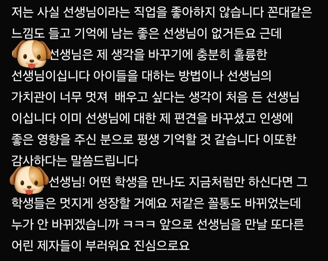 선생님도 이 메세지에 우셨다고 하더라고요