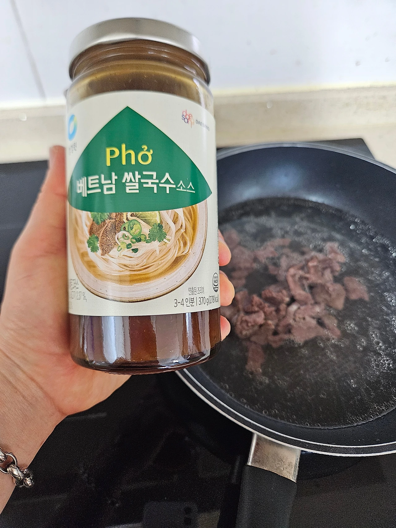 큰 냄비에 옮겨 쌀국수 국물 베이스 소스 넣고