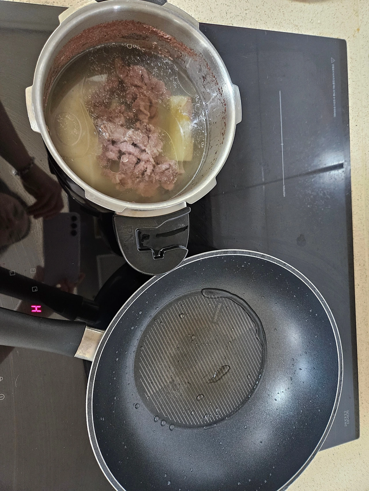 압력솥에 대파랑 넣고 칙칙 끓이고
