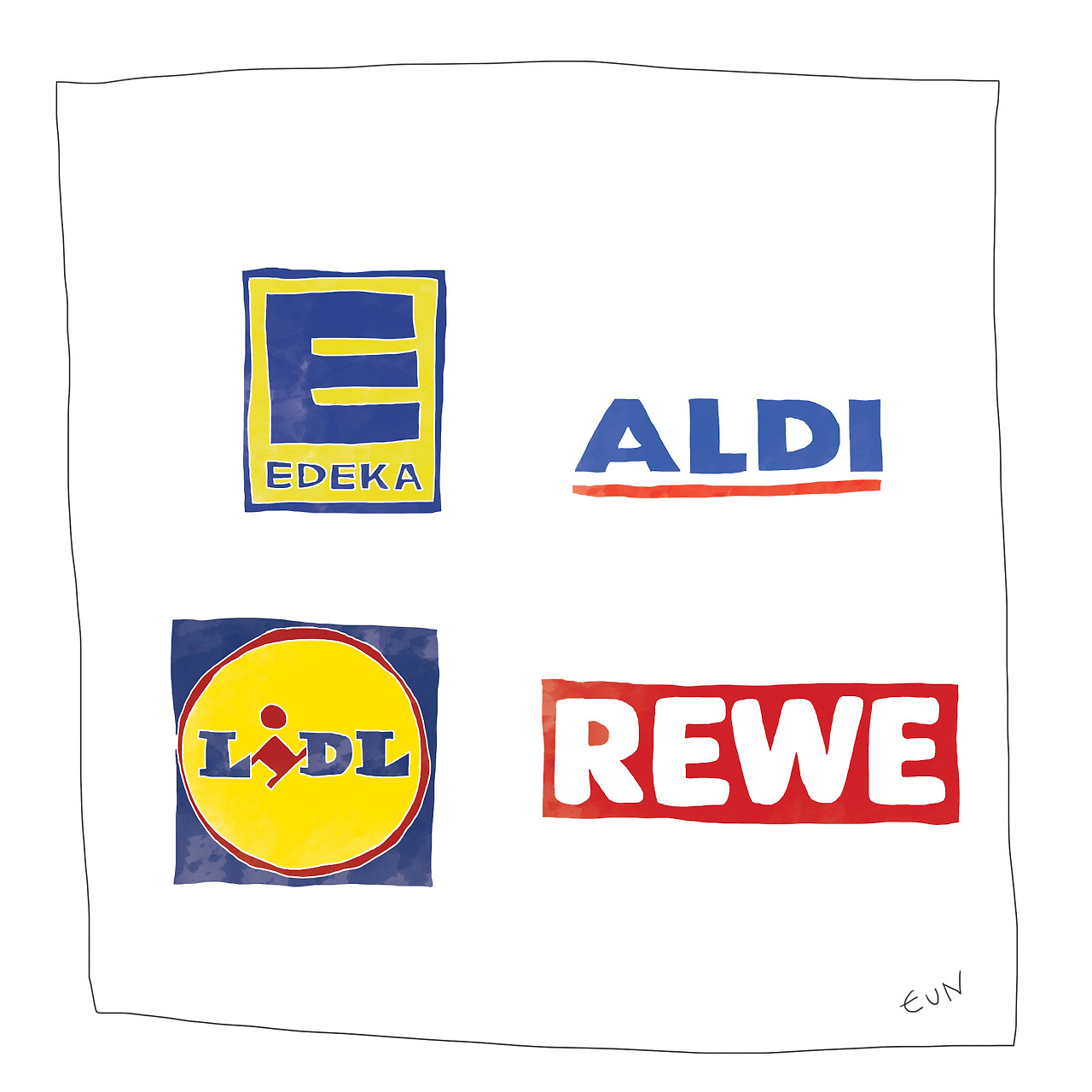 우리 집을 기준으로 걸어서 3분 거리의 에데카(EDEKA), 10분 거리의 알디(ALDI), 15분 거리의 리들(LIDL)과 레베(REWE)가 있다. 4개의 슈퍼마켓은 독일에서도 큰 체인인데 각각의 자체 상품도 생산한다. 이 상품들은 한국의 이마트의 노브랜드나 롯데마트의 통 큰 피자, 치킨처럼 값이 상대적으로 저렴한, 흔히 말하는 가성비가 좋은 상품들이다.