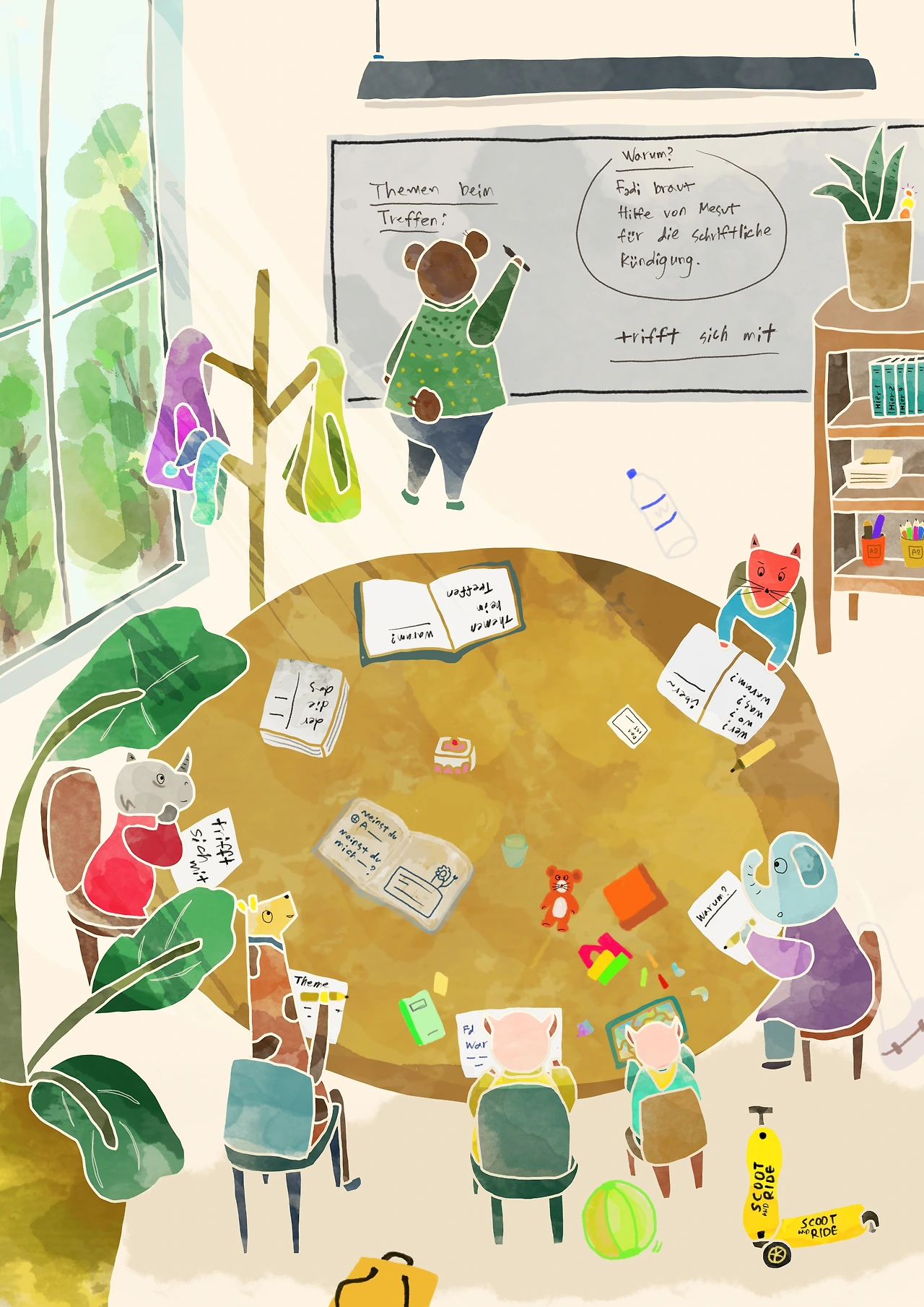 우리 반도 이름은 '엘턴 쿠어스(Eltern Kurs-부모 수업)'이지만 아기 엄마들이 많았던 이 전 수업과는 달리 육아를 하는 건 나 한 명뿐이다. 온라인 수업 때 옆에서 왔다 갔다 하는 내 아이를 보고 다들 반가워해줬고 선생님도 항상 아이의 이름을 부르며 인사를 해주니 아이는 오늘 할머니 선생님(아이는 나의 선생님을 할머니 선생님이라고 부른다.) 만나는 날이냐며 궁금해한다. 그렇게 긴 겨울 동안 옥신각신하며 수업을 했고 봄이 되자(사실 봄이라기엔 너무 춥다) 선생님과 학생, 총 6명이 의견을 주고받으며 마스크를 잘 쓰고 일주일에 한 번은 만나서 수업을 하기로 결정했다.