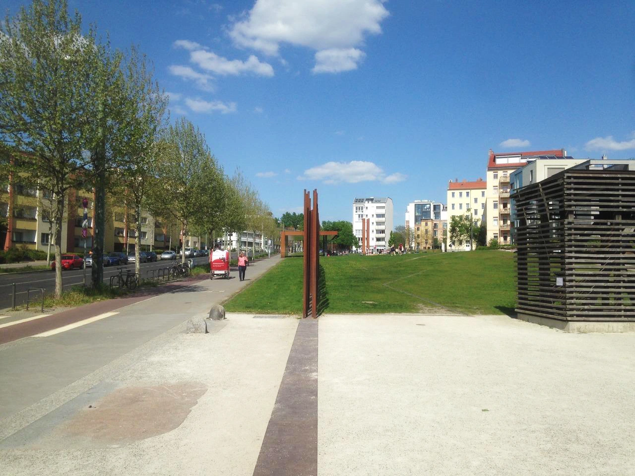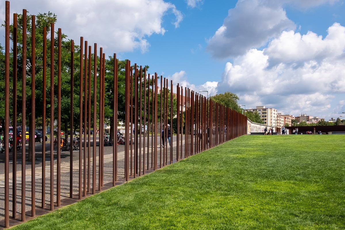 베를린에 손님이 오면 항상 들르는 곳이었다. 베를린 장벽의 흔적을 공원의 일부로, 전시공간으로, 조각품으로 다양하게 경험할 수 있도록 계획된 공간들이다. 장벽이 지나가던 방향으로 나란히 서서 보면 20여 년 전처럼 왼쪽과 오른쪽이 '분단'되어 보이지만 밑의 사진과 같이 조금만 옆으로 비켜서면 사람도 지나갈 수 있을 만한 틈이 보인다. 보는 관점에 따라 과거와 현재를 이야기해 주는, 가볍게 무거운 이야기를 경청할 수 있는 좋은 경험이 될 것이다.
