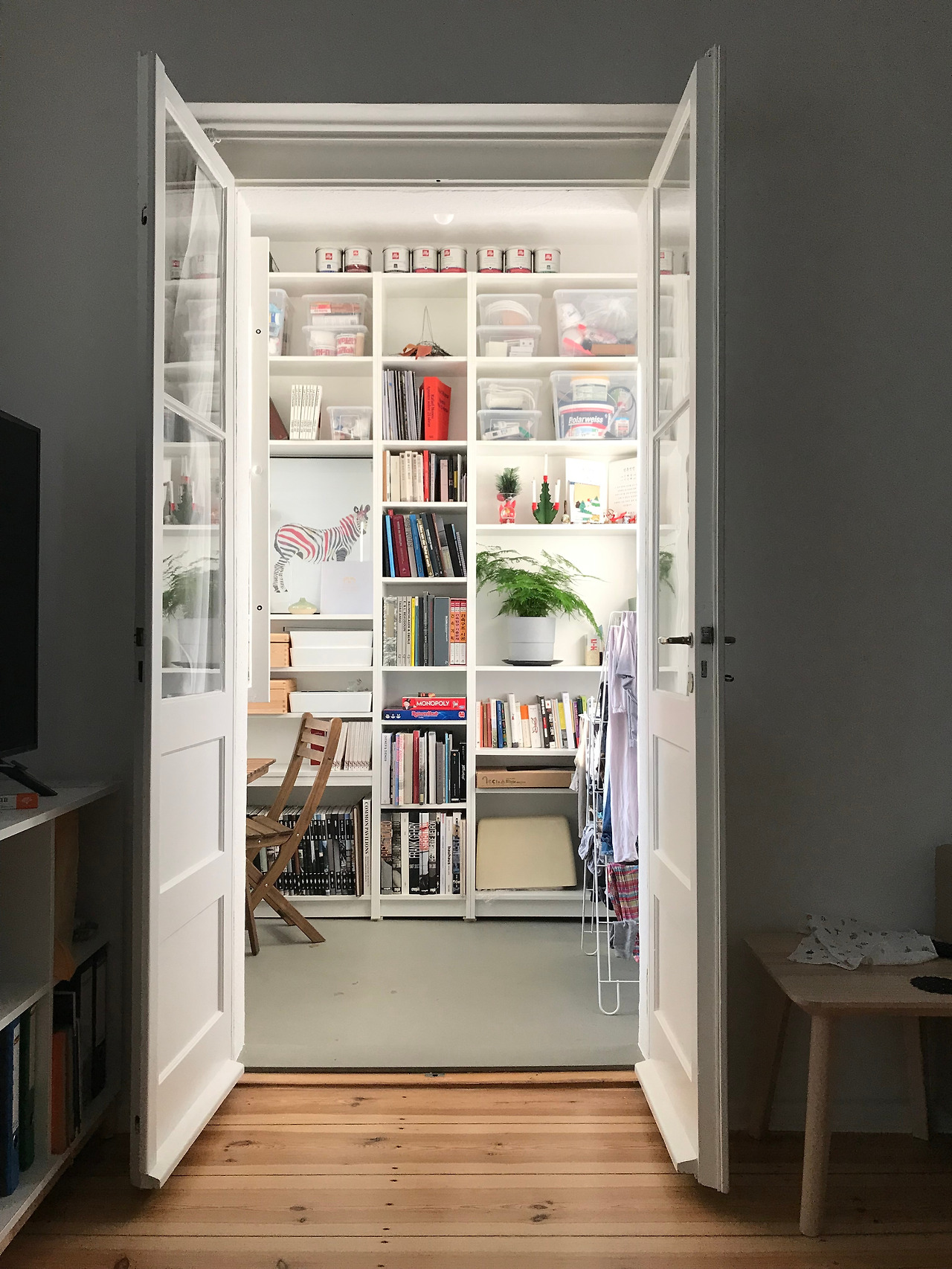 앞으로 얼마나 더 이사를 하게 될지는 모르겠으나 살벌하게 불어나는 살림에 점점 두려워지기는 한다. 세 식구의 살림은 세명의 살림 ‘곱하기’ 알파이다. 살림들을 해결하게 위해 수납공간에 대해 머리를 많이 굴려야 했는데 그렇게 얻어걸린 우리 집 '베란다'는 내가 가장 애착을 느끼는 공간이다. 아주 가끔씩, 모든 가족이 아침에 깨지 않은 조용한 아침에 베란다에 앉는 걸 즐긴다. 너무 자주 주어지지 않는 그 빈도수마저 나에겐 매력적이다.
