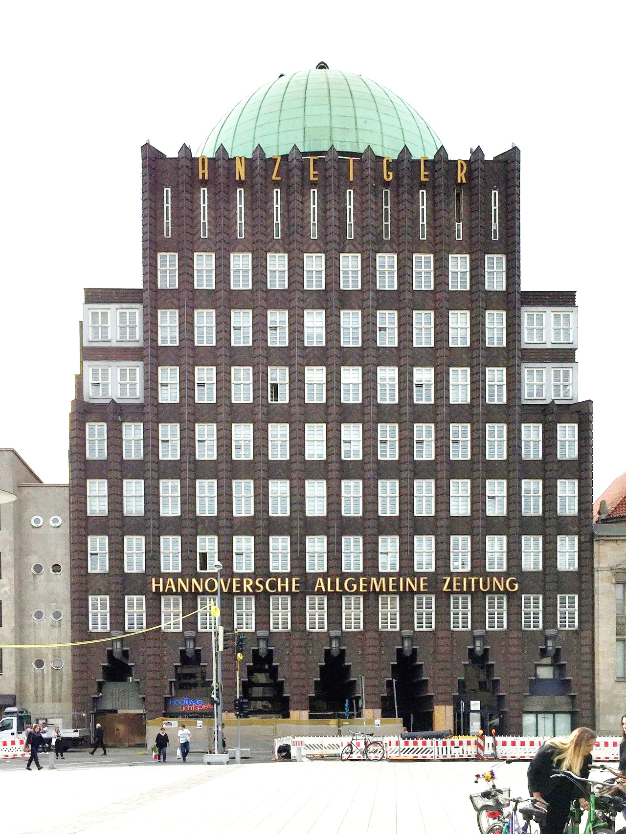 역시 하노버의 적벽돌 건물이지만 기하학의 향현으로 인해 위압적, 혹은 갑갑해 보이기까지 하는 '안차이게-혹하우스'(Anzeiger-Hochhaus)이다. 굳이 억지로 의역하자면 ‘저널리스트 고층건물' 정도가 되겠다. 최초 신문사 사옥으로 계획된 건물이다.