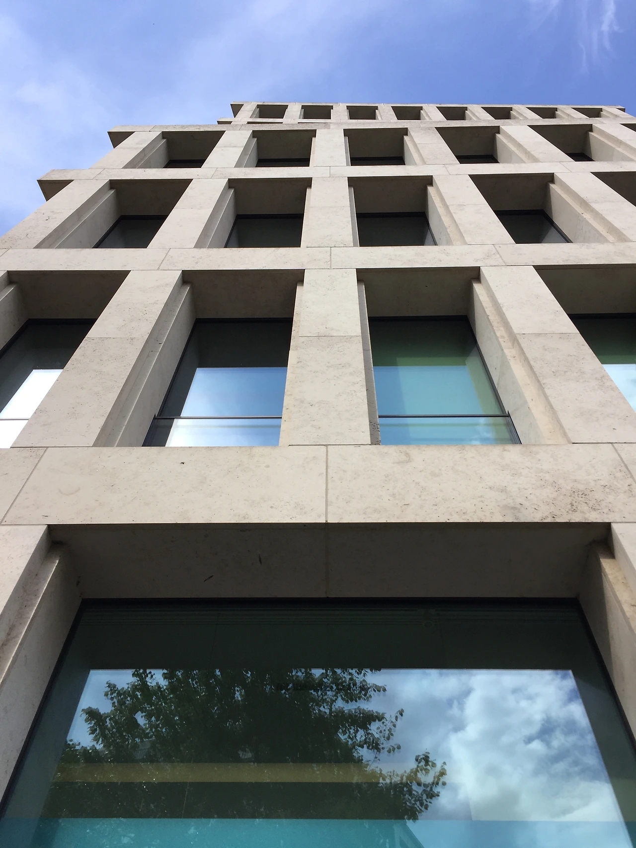 길을 걷다 밑에서 올려다보면 ‘요새’처럼 보이기도 하는 이 건물은 그냥 ‘사무실’이다. 층층마다 월세를 주는, 평범한 용도의 건물이다. 꽤나 값비싼 자연석의 옷을 입은 이 건물은, 좀 비싸게 지어도 좀 비싸게 월세를 주자는, 요새 지어지는 많은 신축 건물 중의 하나다. 그러다 보니 근사하게 차려입은 자연석의 옷 외에는 딱히 크게 특별할 것이 없다. 주변 건물과 특별히 연관되는 점은 어깨의 높이를 나란히 맞춘 점 외에는 없다. 왜 이 색깔의, 이런 무늬의 자연석을 골랐을까 식의 고민은 불필요해 보인다. 여러 날을 고민해서 고른 재료이겠지만 구도심의 벽돌처럼 주변 환경에 의해 결정된, 그래서 더 합리적으로 보이는 도시적 이유보다, 건축가 개인의 성향과 건축주의 성향이 결합된 결과물로 보는 것이 더 맞다. 그러나 분명, 탄탄한 기본기를 잘 지키긴 했다. 자연석과 창문틀이 만나는 방법, 자연석의 줄눈을 넣은 방법, 입면의 요철을 통해 멋진 그림자를 드리워 밋밋한 거리의 입면에 독특하게 보일 수 있도록 의도한 방법 들 말이다. 이렇듯, 여느 도시의 여느 건물이나 장점이나 단점, 멋짐이나 후짐은 모두 가지고 있다.
