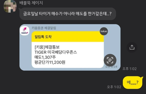 실제 상황이며, 최근 일이다. 아내 부부부의 약 1500만 원 정도 있는 ISA계좌는 -3% 정도의 하락을 기록하고 있었다. 하락한 가격대에 추가 매수를 위한 현금을 입금했다. 마침 주가 흐름에도 곧 상승이 보였다. 추가한 현금은 시장가로 전량 매수를 진행! 곧이어 날아온 체결 알림 카톡. 순간 잘못 본 줄 알았다. 아니 잘못 날아온 줄 알았다. 눈을 비비고 봐도 그대로 전량 매도를 해버렸다는 내용이었고, 실제 계좌를 확인해 보니 사실이었다. 그리고 하루 뒤 예상대로 주가는 상승으로 전환되었다. 그렇다, 손가락 클릭 실수로 50만 원이 한순간에 날아간 것이다. 참고로 우리 부부 한 달 용돈 합계가 50만 원이다.
