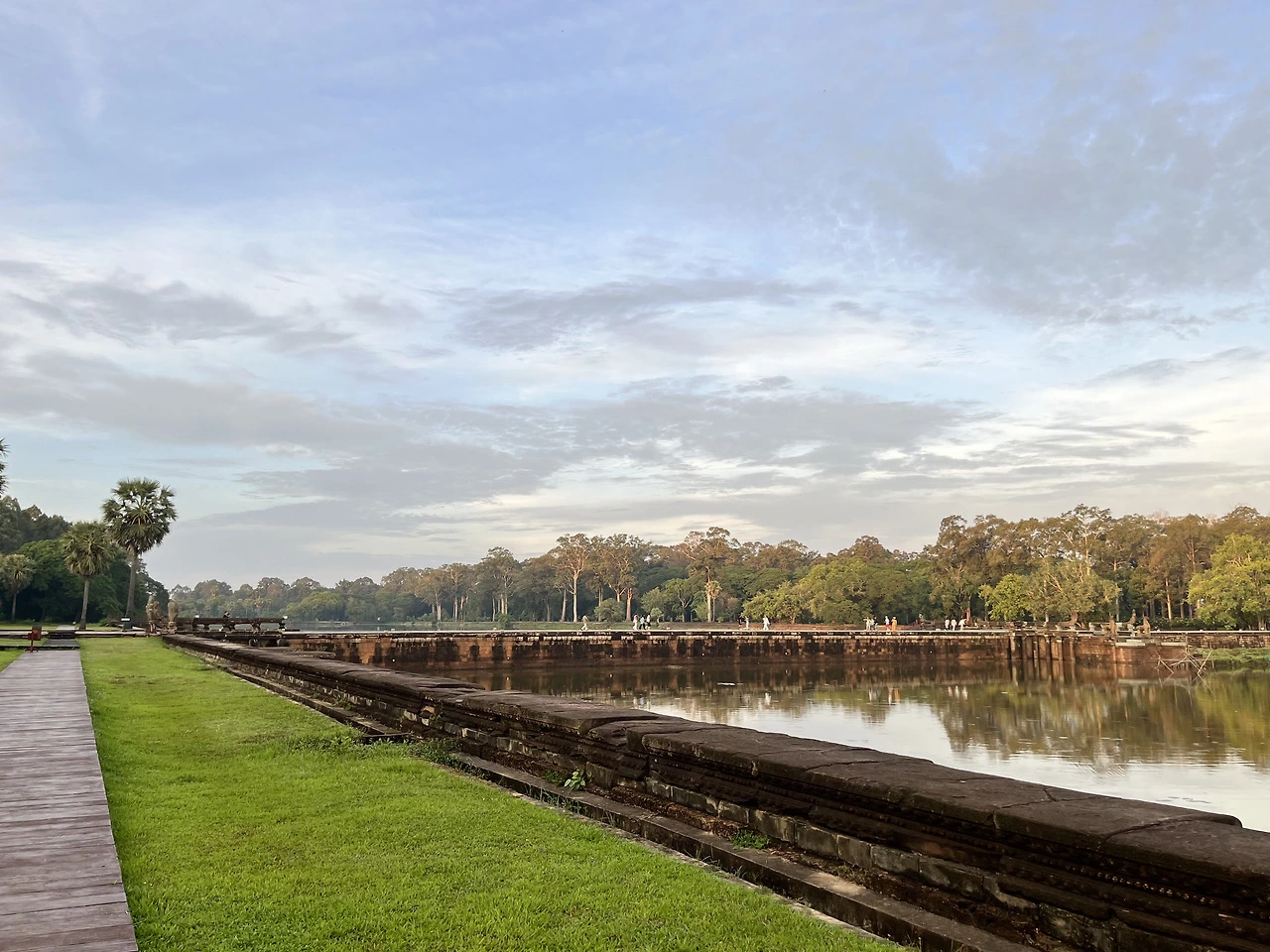 해자 바깥에서 앙코르 와트의 일출을 보고 나니, 허탈함으로 인해 다시 마음을 추스를 시간이 필요했다. 어차피 외벽 안으로 바로 돌아가봤자 일출을 보고 나온 관광객들이 중앙사원을 가득 메우고 있을 것 같았기에 일단 해자 주변을 좀 걷기로 했다. 해자를 따라 오른쪽으로 걷고 있는데, 툭툭 기사 한 명이 뒤따라 오며 호객 행위를 하기 시작했다. 해자 주변으로 한 바퀴 돌고 싶으니 툭툭은 필요 없다고 정중히 거절을 해도, 자기와 함께 하면 편하게 여러 사원 구경할 수 있다고 끈질기게 따라붙었다. 여느 호객꾼들과 달리 거절이 통하지도 않고, 계속 듣고 있자니 정신이 어지러우면서 진도 빠지는 게 느껴져 이대론 안 되겠다 싶어 다시 무지개다리를 건너 앙코르 와트 외벽 안으로 들어가기로 했다.