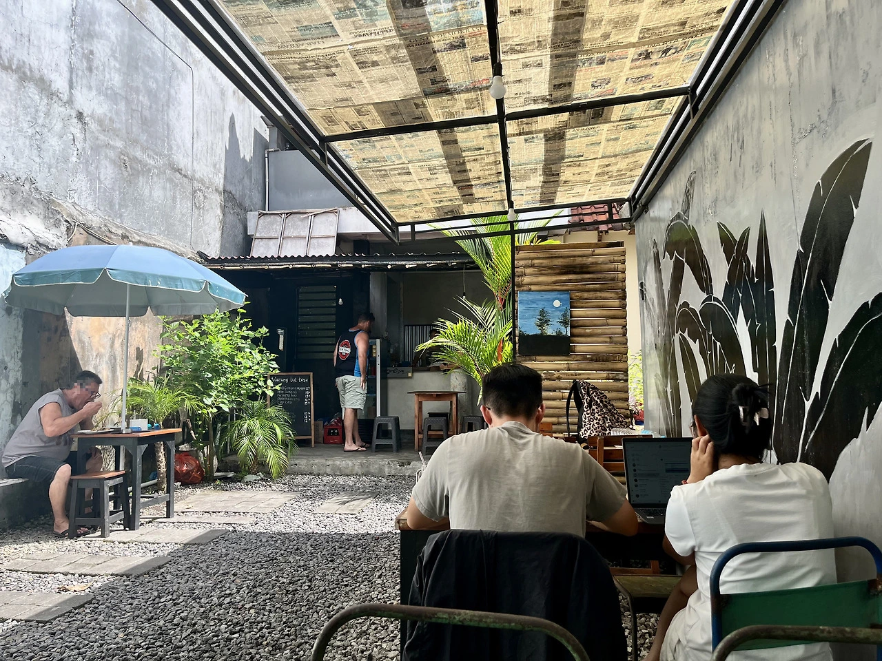 레기안 거리를 얼마 더 걸어 드디어 식당에 도착했다. 식당은 거리 바로 옆에 위치해 있었음에도, 붐비고 정신없는 거리의 분위기랑은 다르게 평온하고 소박한 곳이었다. 식당 이름은 Warung Tut Taya. 인도네시아에서는 이런 아담한 규모의 노점 식당을 와룽(Warung)이라 부른다는 것도 이때 알게 되었다. 보통의 와룽이 그렇듯 에어컨은 없었고, 카운터석 빼고 모두 야외 테이블이었다.