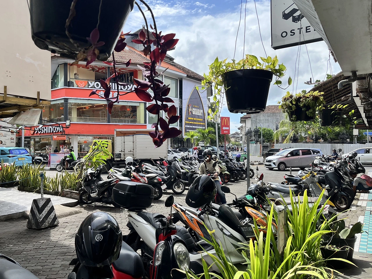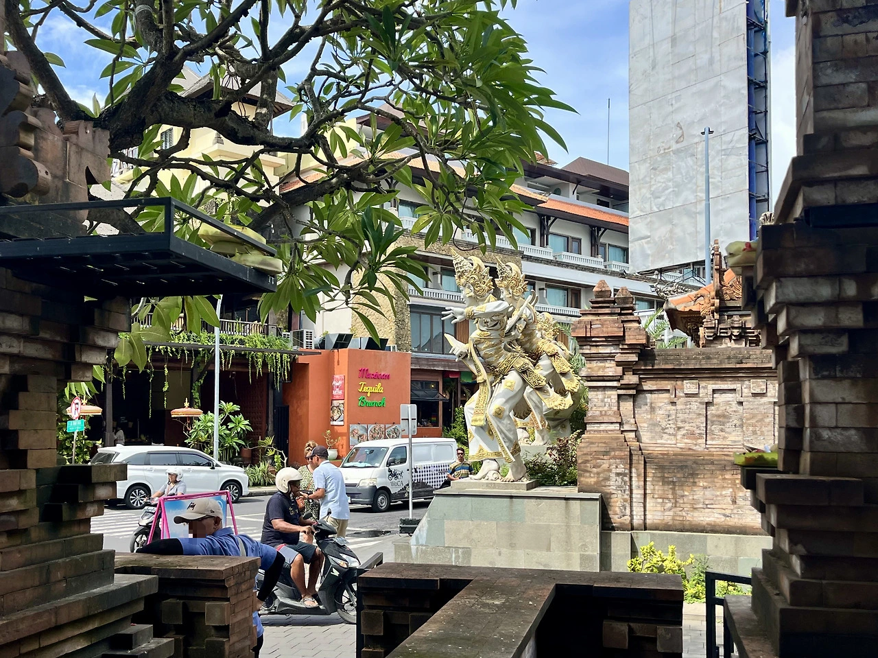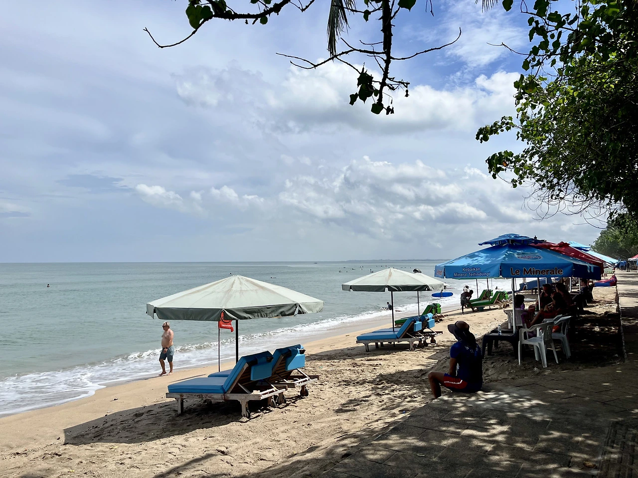 해변 바로 옆으로 나있는 길에 접어들었다. 상업적 성격이 짙은 꾸따의 여느 거리들과 유사해 보이면서도 이곳 특유의 분위기를 느낄 수 있었다. 노방에는 기념품, 음식과 음료를 판매하는 노점들이 줄지어 있었는데, 노점 사이사이로 어제 봤던 꾸따의 모래사장과 파도, 그리고 휴양지의 여유를 즐기는 사람들이 보였다. 전체적으로 큰 거리보다 한적했고, 곳곳에 있는 나무 그늘 덕분에 걷기에도 좋았다. 덕분에 느긋하게 풍경을 감상하며 걸어보았다.