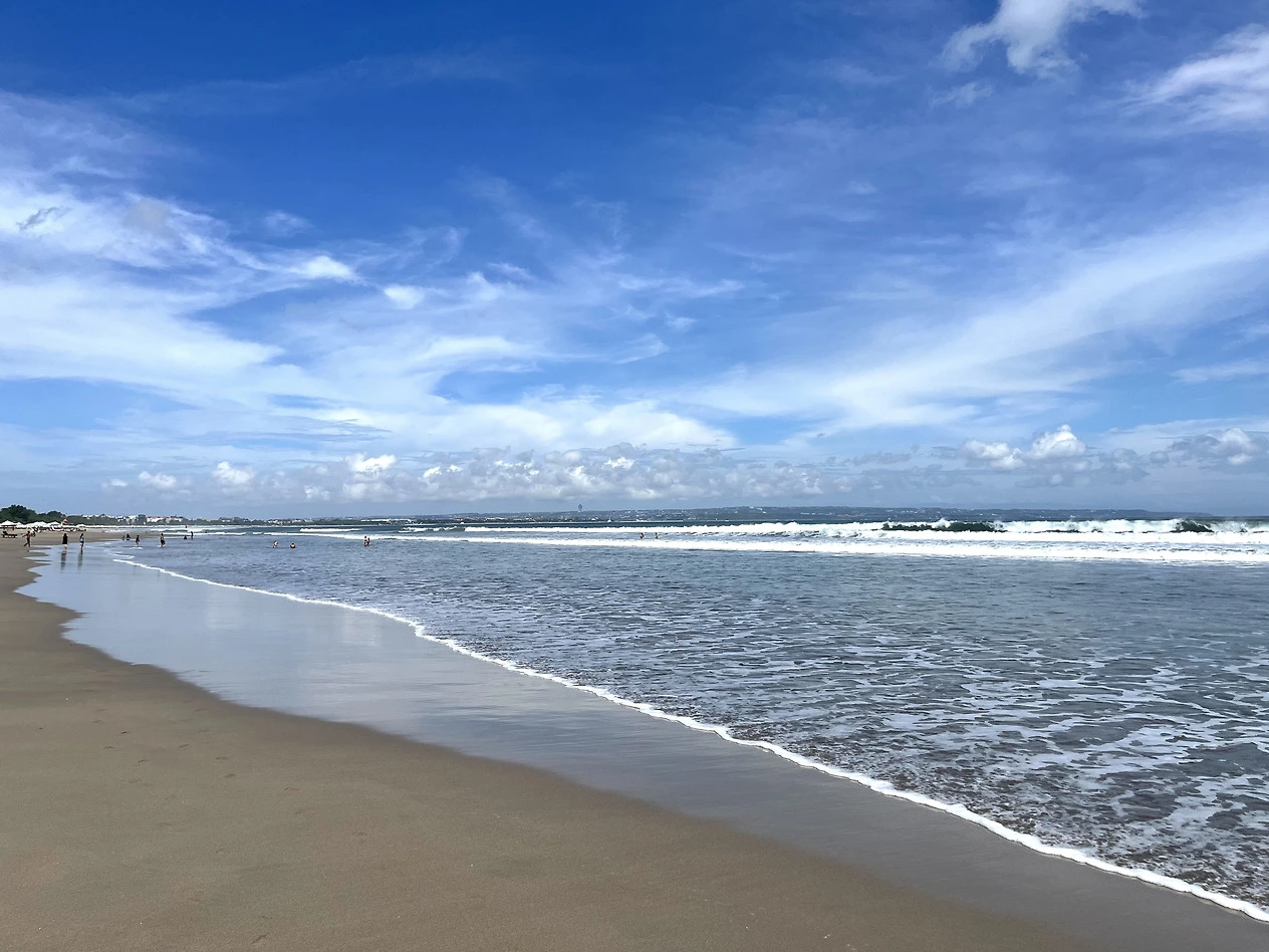 고급 리조트와 호텔이 빡빡이 들어서 있는 구역을 지나 스미냑 해변의 입구에 다다랐다. 그곳에도 약간은 초라해 보이는 규모의 발리 짠디 븐따르가 해변 입구를 지키고 서 있었다. 석문 가운데를 통과해 뻥 뚫린 해변으로 나왔다. 스미냑 해변의 생김새나 분위기는 꾸따, 레기안 해변과 사실상 이어져 있어서 그런지 퍽 흡사하긴 했으나 아름답긴 매한가지였다. 멀리서부터 규칙적으로 밀려오는 파도에 마음도 안정을 되찾는 듯, 파도 부서지는 소리에 갑갑했던 심정도 함께 바스러지는 듯했다. 해변을 마음껏 거닐며 아래쪽으로 내려갔다. 지나치는 사람들의 느긋하고 행복한 표정, 아이들의 천진난만함, 서퍼들의 생기 가득한 몸짓은 봐도 봐도 질리지 않았다. 문득 내가 그들을 바라보며 행복을 느끼는 것처럼, 그들도 날 바라볼 때 행복까진 아니더라도 긍정적인 기운을 받을지 궁금해졌다. 이왕이면 그랬으면 좋겠다는 생각을 해본다.