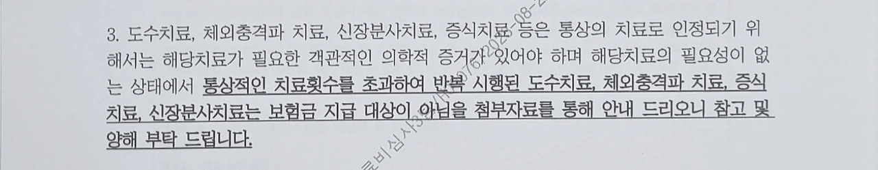 "금감원과 의사협회에서 요통 환자들에게 도수치료 12회가 적정하다는 판단이 있습니다. 법이 그래요. 12회 이상부터는 고객님께 앞으로도 영원히 지급할 수 없어요"