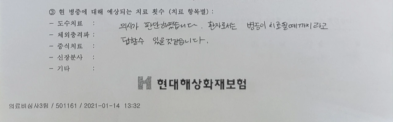 평소처럼 병원에서 도수치료를 하고, 보험회사에 실비청구를 했다.
