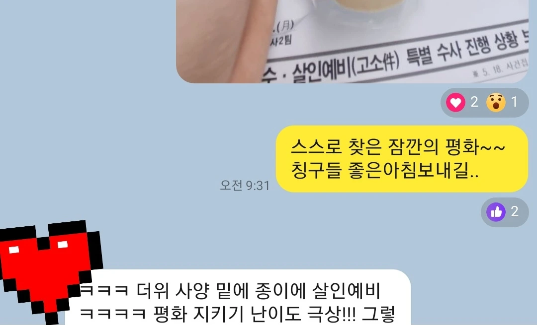 친구 덕분에 이렇게 잠시 숨죽여 웃는다.
