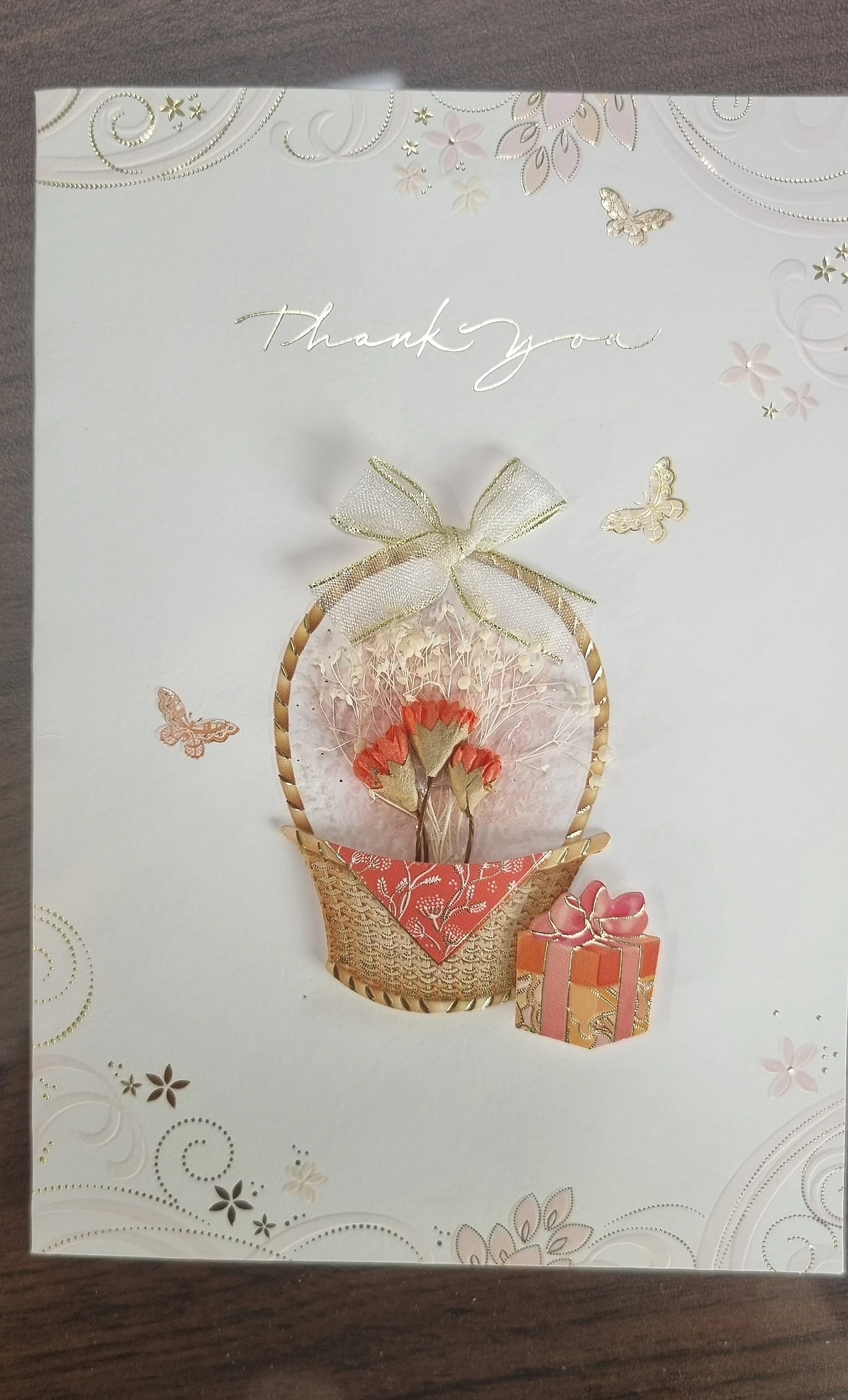 카드에는 고맙다는 말과 함께, 직접 만든 꽃수세미니 꽃길만 걸으시라는 내용이 쓰여있었다.
