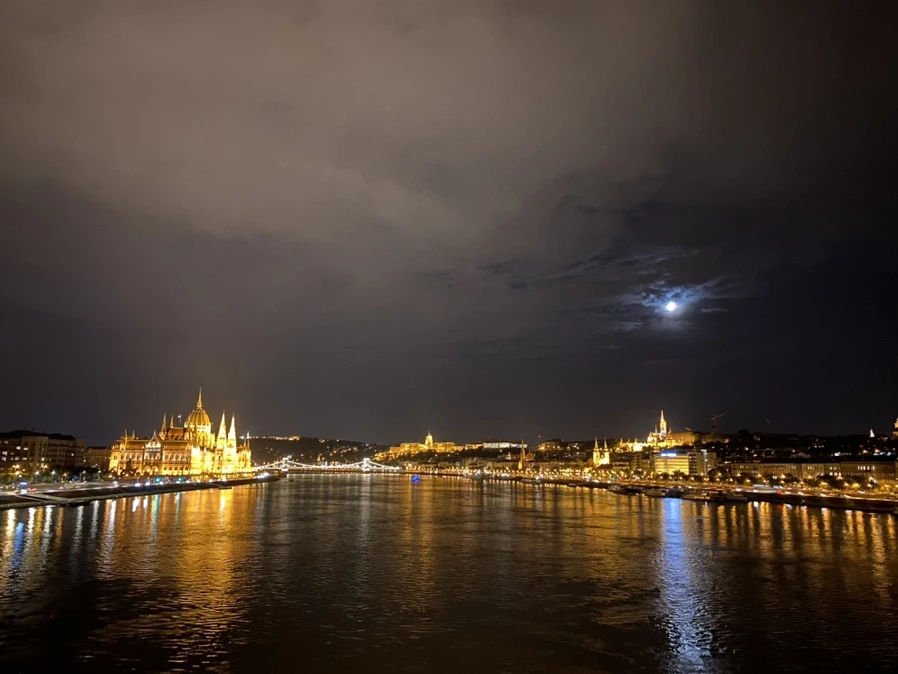 두너 강 위, 국회의사당 맞은편, 어부의 요새 머리 위에 손톱만한 반원형의 달이 곱게 빛나고 있었다.