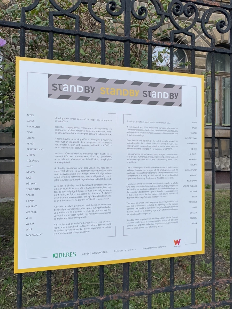 The Standby open-air exhibition endeavours to evoke these feelings, through the images of 20 photograghs and 23 paintings, vision of more than forty artists in the exeptional environment of Kodaly korond, one of the most beautiful squares on Andrassy Boulevard, a World Heritage Site.