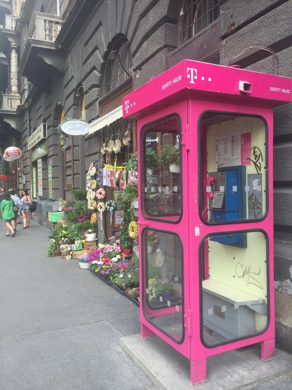 원색적인 공중전화 부스 (헝가리인들 형광색 참 좋아한다!) _+ 그 옆에 '꽃집'