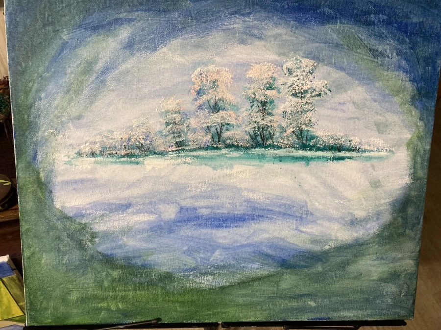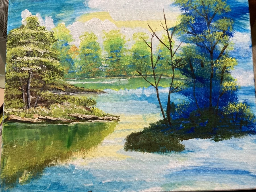 흰 캔버스를 앞에 두고 EBS에서 인자한 미소로 그림을 가르쳐주는 밥 아저씨를 따라 여백에 색을 입혀가던 그녀의 모습 -