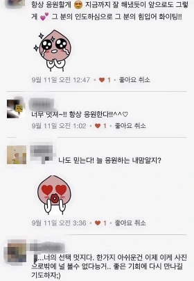 언닌 내가 이 내용 캡처해놓고 얼마나 힘을 얻었는지 모를 거야. 고마워요.