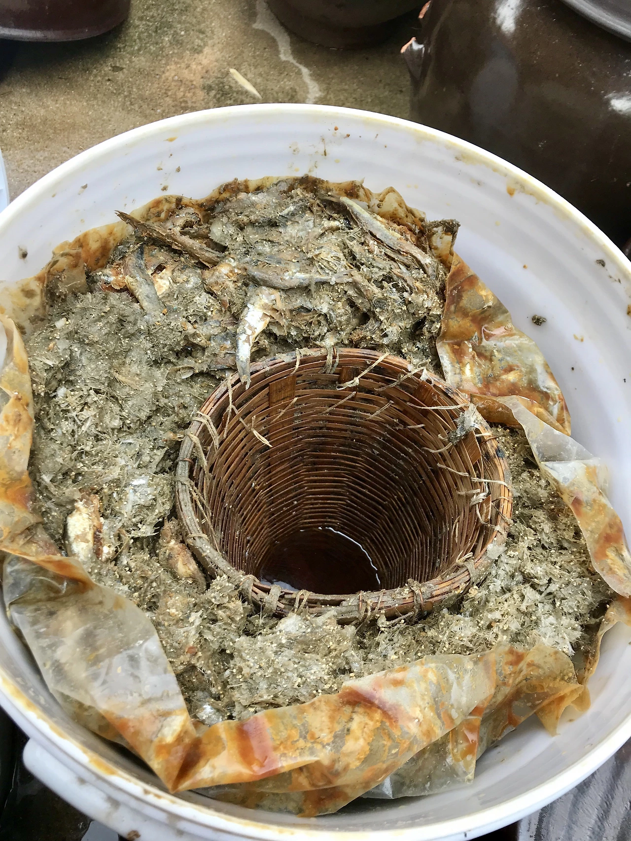 종부님은 멸치액젓을 직접 담가 음식에 소금 대신 사용한다. 한 50년 정도 담갔다. 멸치는 서울 살 때 노량진에서 구입하고, 부산 살 때나 지금은 기장에서 구입한다. 멸치는 4월 중순에 알이 배고 맛이 좋아, 그때 구입해서 5월 어린이날, 어버이날, 스승의 날 즈음에 담그면 적당한 시기다. 멸치를 깨끗이 씻어서 소금에 버무려 담그는 게 전부다. 멸치에 소금을 넣고 버무려 항아리에 담는 과정을 반복해서 해주는데, 멸치를 소금에 버무릴 때 손으로 잡아 미끄럽지 않으면 소금 간이 딱 맞는 것이다. 경험의 노하우다. 담근 멸치액젓에 용수를 박고 건더기와 액젓을 세월에 맡겨 분리한다. 액젓이 뻑뻑하면 못 쓰고 아주 맑아야 한다. 옛날에는 액젓을 다 뜨고 남은 멸치 건더기를 버렸는데, 지금은 물을 조금 섞어 멸치젓갈로 사용한다. 멸치젓갈은 냉장고에 넣어두고 나물 무칠 때나 국 끓일 때 조금씩 넣어 사용하고 있다. 맛보라고 챙겨 주신 멸치액젓에서 종가 삶의 깊이를 느낄 수 있다.