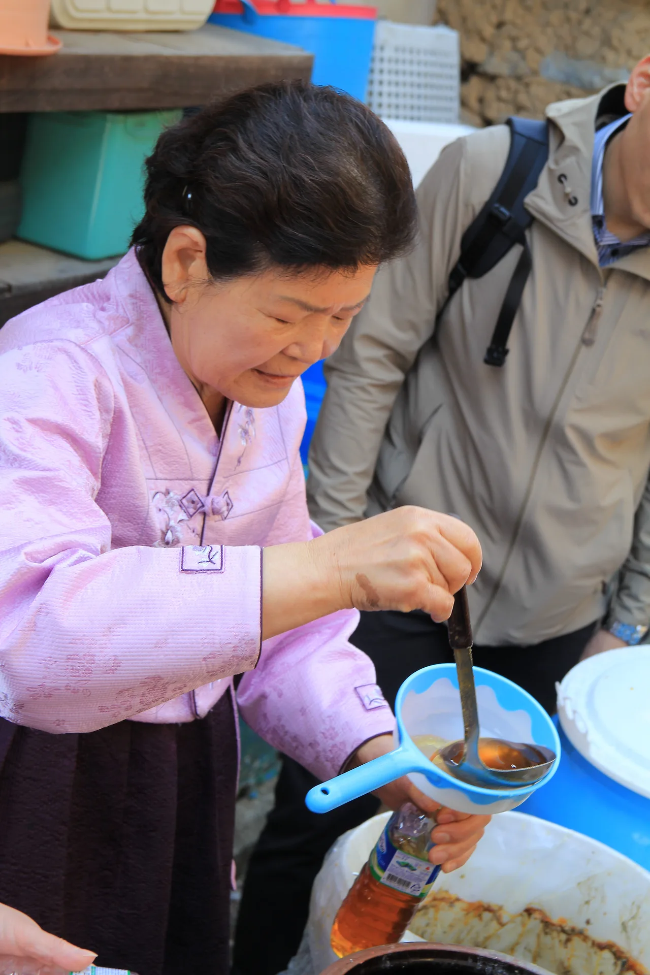 옛날에 기장에서 "멸치 사세요. 멸치 사세요."하고 돌아다녀요. 집에 부르면 씻어가지고 싹 담아주고 가요. 뜨는 건 내가 뜨는 거예요. 용수를 박아 멸치를 싸악 위에 꺼 따글면 노란 물이 퐁~하고 나와요. 아주 맑은 노란 물이 퐁~ 나와요. 난 뻑뻑한 멸치액젓은 안 써요. 난 미역국에도 그걸 여. 그럼 맛이 훨씬 더 감칠맛이 나지