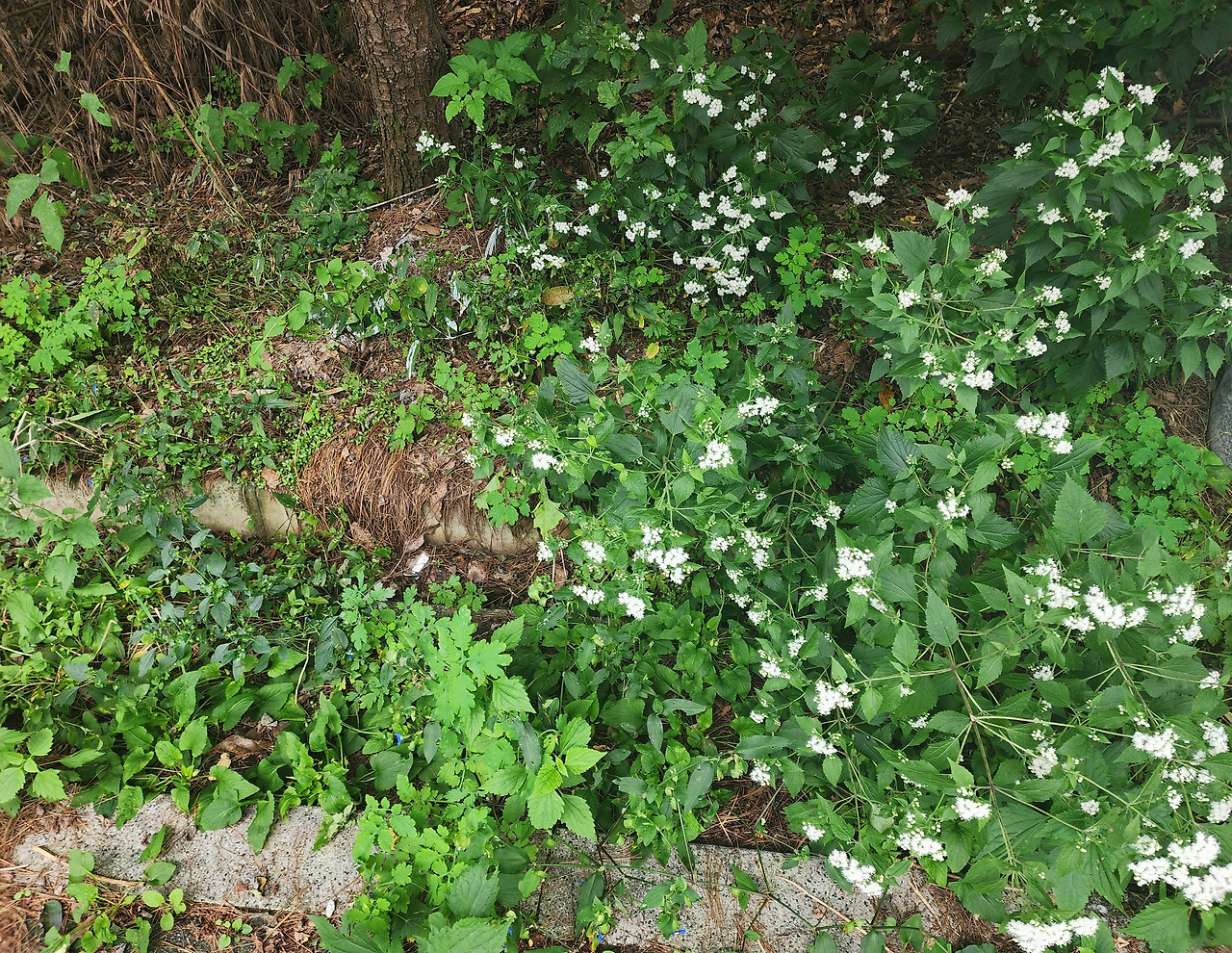 그런데 초록색 잎사이로 하얀 꽃과 파란 꽃이 보인다. 우리 아파트만이 가진 고유한 분위기와 풍경이 나의 시선에 닿은 것이다. 걷지 않았다면 볼 수 없는 귀한 풍경이었다. 눈앞에 두고도 무심하게 지나친 나의 일상을 돌아보게 되었다.