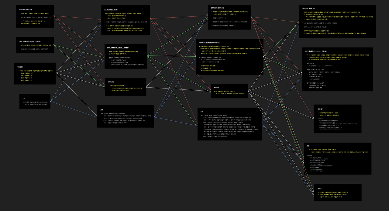 왜 우리가 직접 데이터센터를 지어야 했는지, 그 경험이 어떻게 AI 기술의 토대가 되었는지를 설득력 있게 전달하고 싶었습니다. 정보와 그래픽을 통해 시대별 기술의 변곡점을 시각적으로 표현하여, 그저 과거의 나열이 아닌 미래를 향한 흐름으로 보이도록 디자인했습니다.