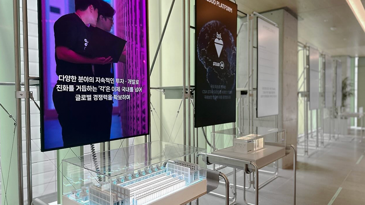 또한, 기술의 각 분야를 상세히 설명하는 영상 콘텐츠를 제작하여 디스플레이를 통해 전달하고 있습니다. 데이터센터의 건축 철학부터 클라우드 플랫폼의 유연성, AI 모델의 발전 과정, 디지털 트윈과 소버린 AI의 비전, 그리고 실제 고객 적용 사례까지. 각 주제를 깊이 있게 다루어 기술에 익숙하지 않은 사람도 쉽게 이해할 수 있도록 구성했습니다.