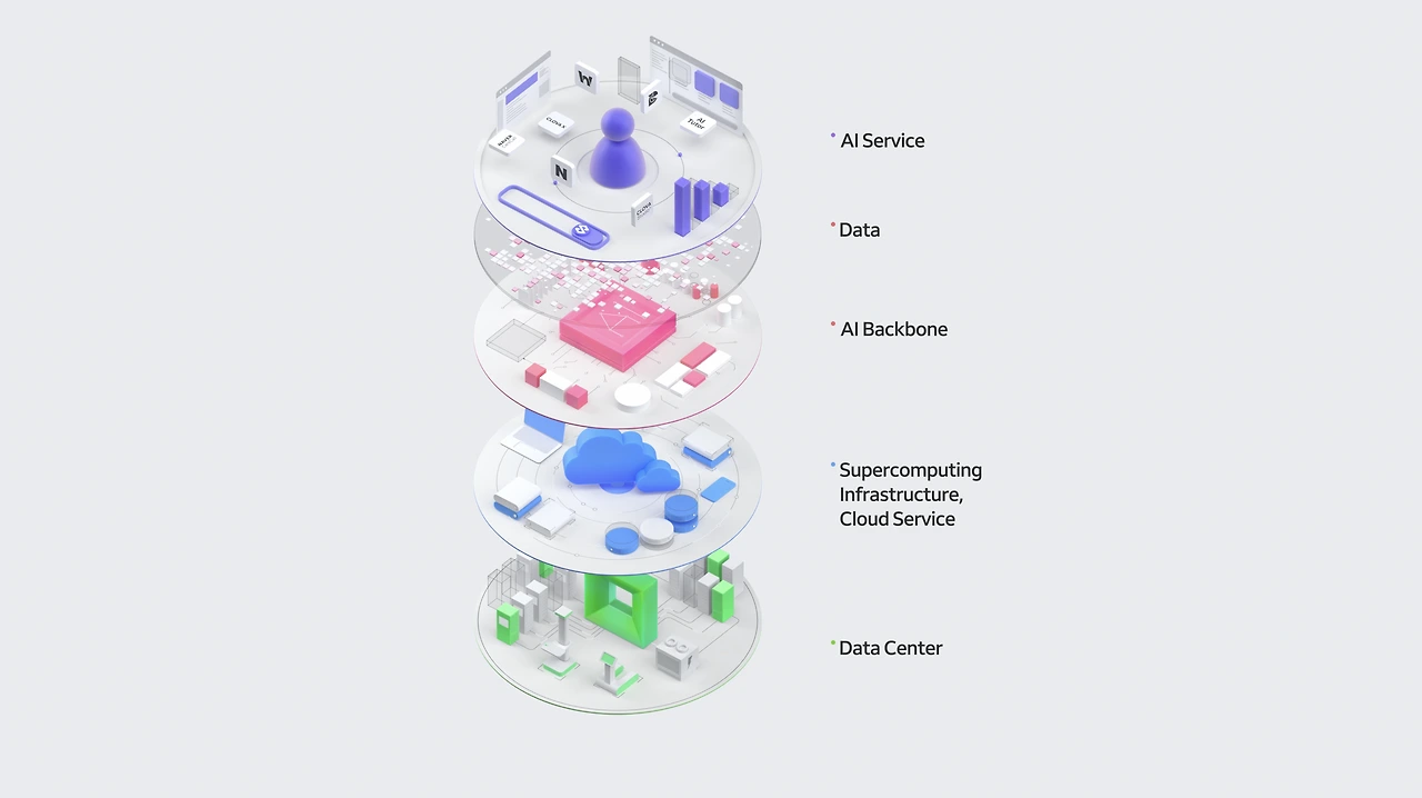 이렇게 축적된 기술 체력은 AI 시대에 이르러 비로소 그 진가를 드러내기 시작했습니다. 하이퍼스케일 데이터센터 '각 세종'과 자체 슈퍼컴퓨팅 인프라를 기반으로, 우리는 초거대 AI '하이퍼클로바X'를 탄생시킬 수 있었습니다. 데이터센터부터 클라우드 플랫폼, AI 모델, 그리고 응용 서비스까지. 이제 네이버클라우드는 AI 시대에 필요한 모든 기술을 자체적으로 확보한 'AI 풀스택(Full-stack)' 역량을 갖추게 되었습니다.