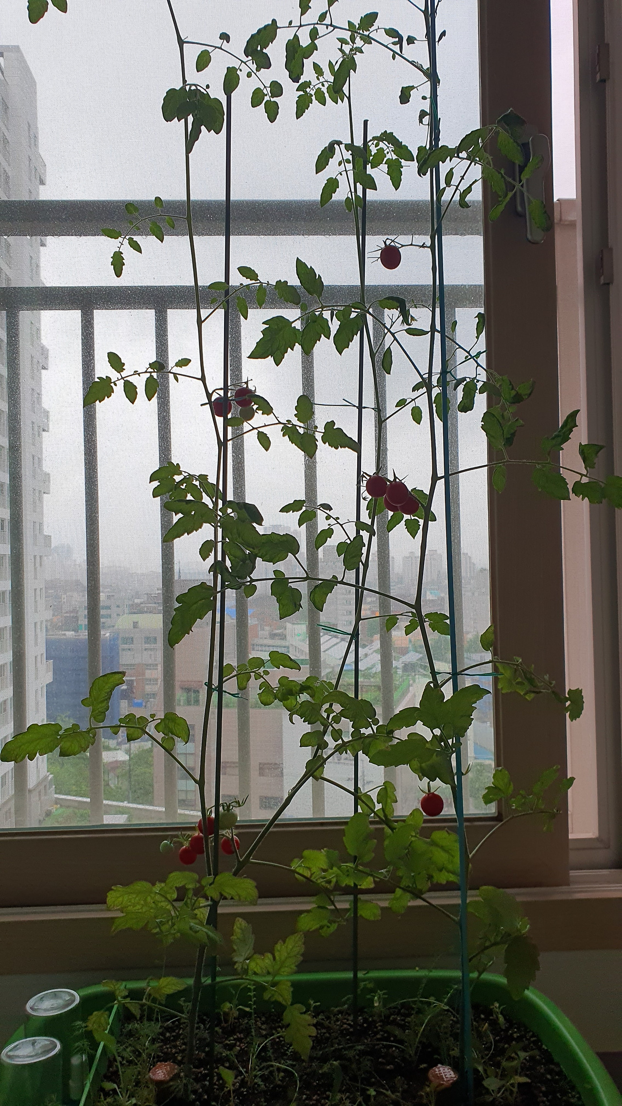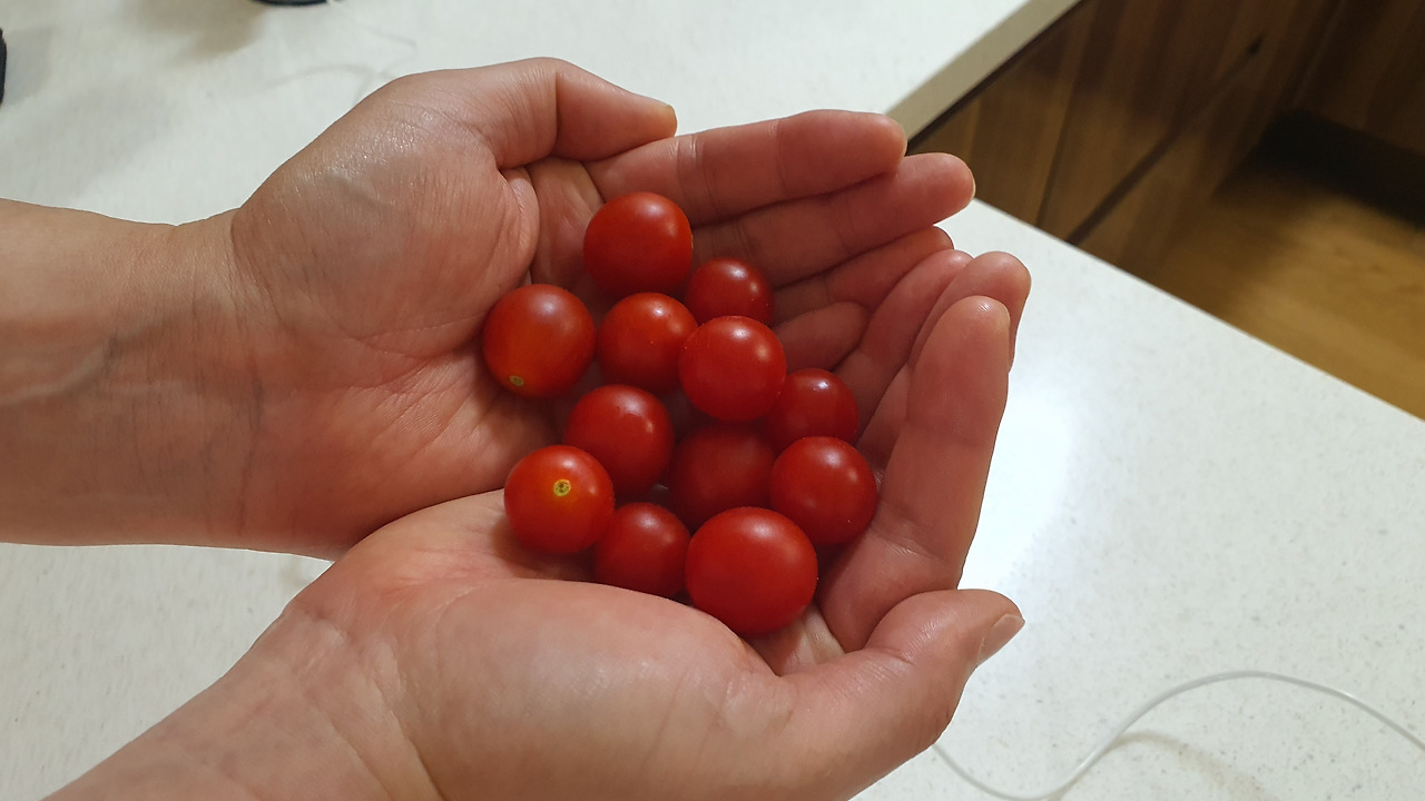 현재 우리 집 토마토는 베란다 천장을 뚫고 나갈 기세인데, 밖에서 키웠더라면 좀 더 좋았겠지만 이 답답한 베란다에서 이 정도 커준 것만으로도 감사한 마음이다.