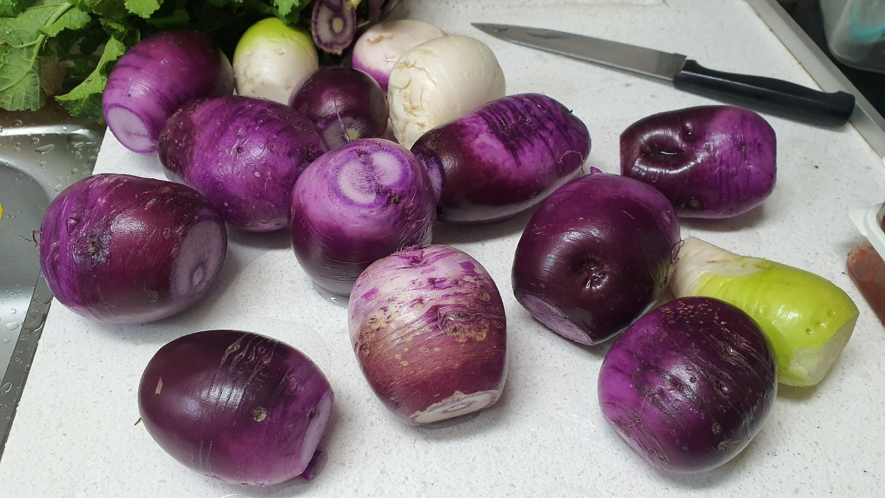 씨를 뿌릴 때는 몰랐는데 흰색 무보다 자색무가 더 많이 나왔다!