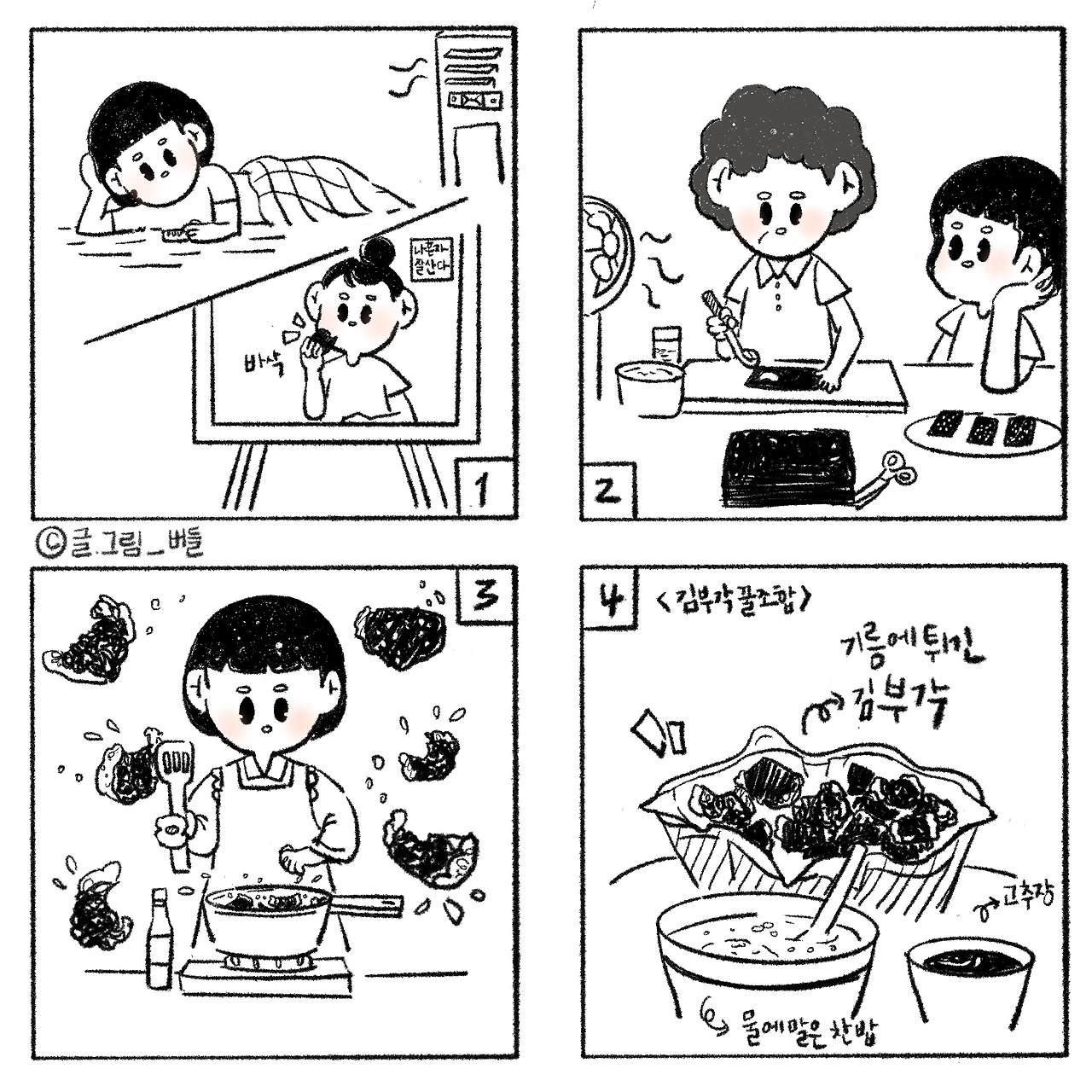 한낮의 햇빛이 유난히 따갑게 느껴지는 여름이 되면, 할머니는 찬장 한편에서 묵은 김 한 묶음을 꺼냈다. 볕이 잘 드는 계절에 해 먹기 좋은 김부각을 만들기 위해서다.