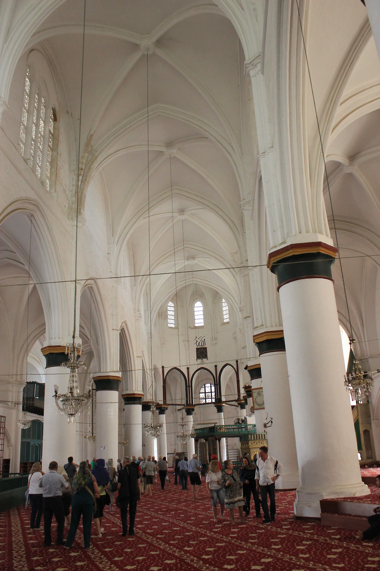 그런데 여느 아랍의 모스크와 외관부터 다르다. 분명 두 개의 첨탑(미나렛)이 우뚝 서 있지만, 외관은 틀림없는 고딕성당이다. 내부로 들어가면 더욱 확실해진다. 이 건축물은 기 드 뤼지냥의 후손들이 다스리던 십자군 왕국 시기에 건립된, ‘성스런 지혜’란 뜻의 아야소피아 성당이었다. 비록 내부는 하얗게 회칠이 되고 성화들은 모두 지워졌지만, 제단을 향해 늘어선 날렵한 기둥과 높다란 천장은 성당 본래의 원형을 잘 유지하고 있다. 무슬림이 후대에 덧붙인 미흐랍(메카방향을 가리키는 표식)만이 어색하게 붙어 있을 뿐이다.
