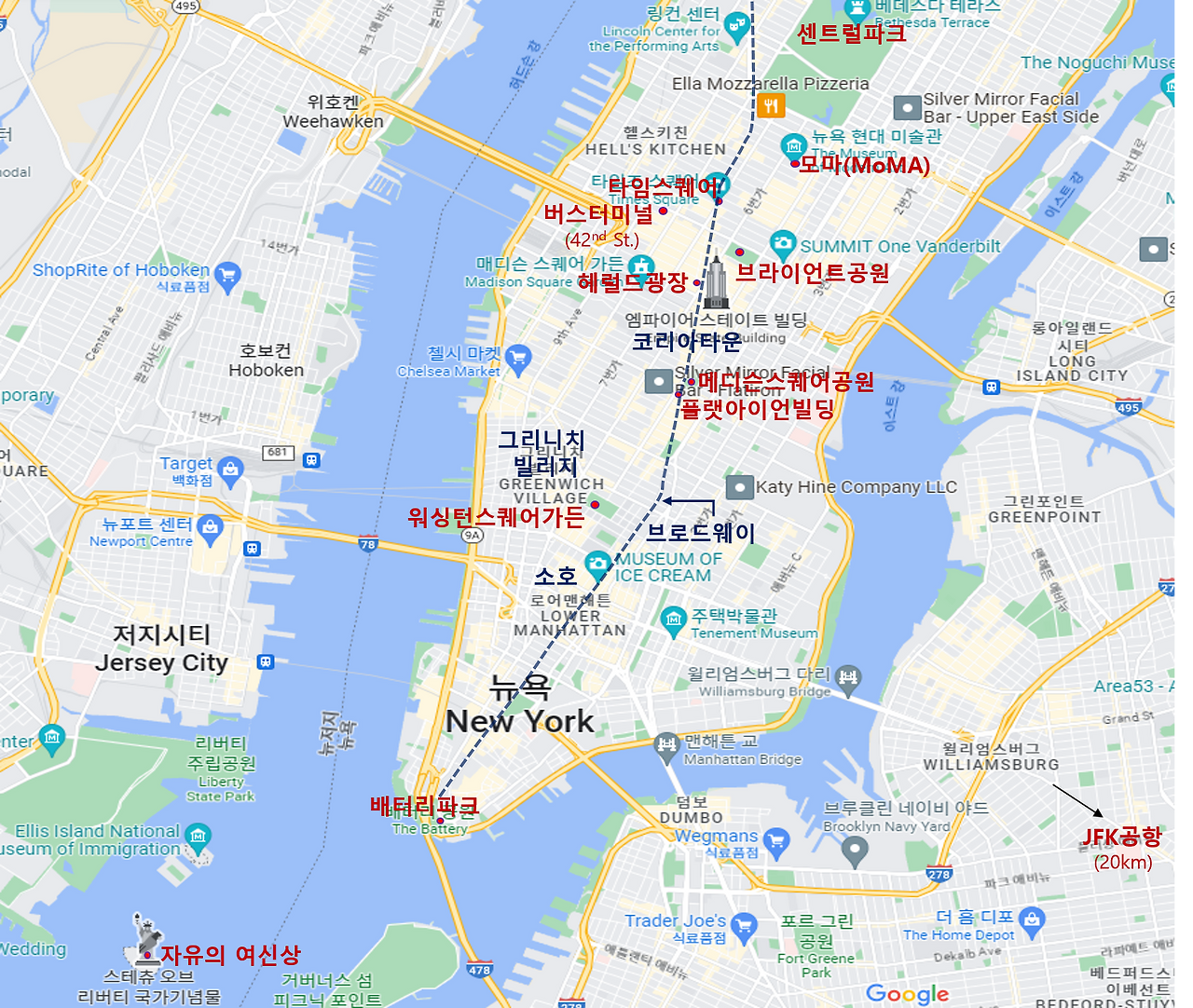누구나 다 알만큼 유명한 이것은 바로 센트럴파크와 브로드웨이다.