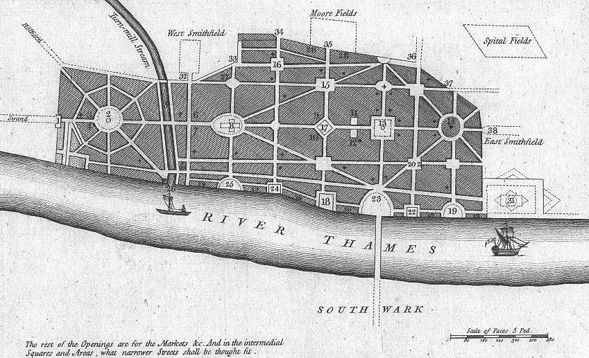 그렇다. 영국편에서 언급한 대로, 1666년 런던대화재 이후 로열 소사이어티 회원이었던 크리스토퍼 렌과 존 이블린이 앞다퉈 내놓았던 런던대개조 계획과 매우 유사하다. 특히, 존 이블린의 계획을 본 후 DC 지도를 보면 소름끼칠 정도다. 우연이었을까? 아니다. 이 패턴은 너무나 유명한 종교적 상징을 차용했을뿐이다.