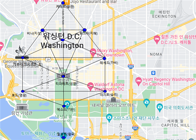 (사진8-28. 워싱턴DC 지도 위에 세피로트를 겹친 모습, 구글지도 활용)