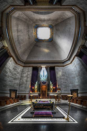 정사각형 방 안에 다시 정사각형 공간이 있고, 그 한가운데 제단이 있다. 제단 바로 위에는 천창이 있어 자연광이 쏟아진다. 천창은 바로 피라미드의 잘린 면이다. 템플룸에서 치러지는 수많은 의식 중에 32도에서 최고 등급인 33도로 승급하는 세리머니도 포함되어 있다. 33도까지 가려면 32도가 된 후 8~12년 정도가 걸린다고 하는데, 댄 브라운의 <로스트 심벌>에서 승급의식의 일부를 살짝 엿볼 수 있다.