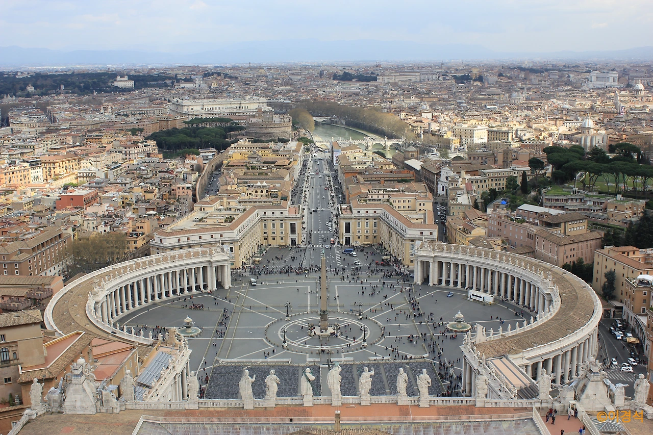 베드로 대성당의 돔에서 눈에 띄는 건 또 있다. 배드로 광장에서 산탄젤로성과 테베레강까지 일직선으로 시원스레 쭉 뻗은 도로(‘화해의 길’)를 보고 있노라면, 성당에서 방사된 가톨릭의 영성이 한 줄기 빛처럼 인간들의 세속 공간으로 파고드는 기분이다. 건축만으로도 충분히 전달되는 이 드라마틱한 감흥은 워싱턴 DC의 캐피톨 앞에 섰을 때에도 똑같이 폭발한다. 그도 그럴 것이 DC의 중심부는 바티칸과 데칼코마니처럼 너무나 비슷한 도시구조를 가지고 있기 때문이다.