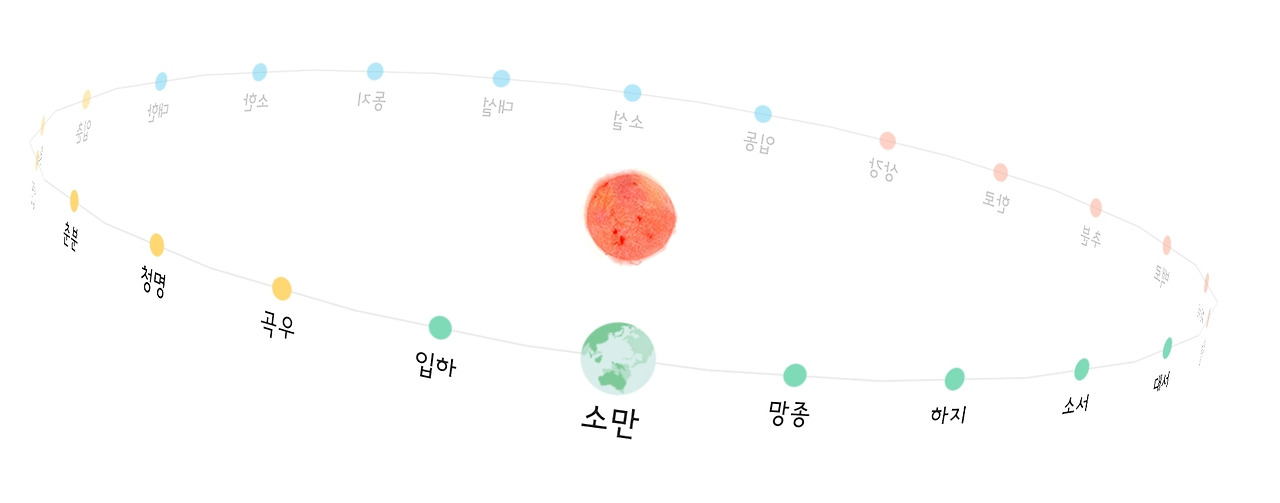 소만(小滿)은 햇볕이 풍부하고 만물이 점차 생장하여 가득 찬다는 의미가 있다. 이때 보리이삭은 익어서 누런색을 띠니 여름의 문턱이 시작되는 계절이다.
