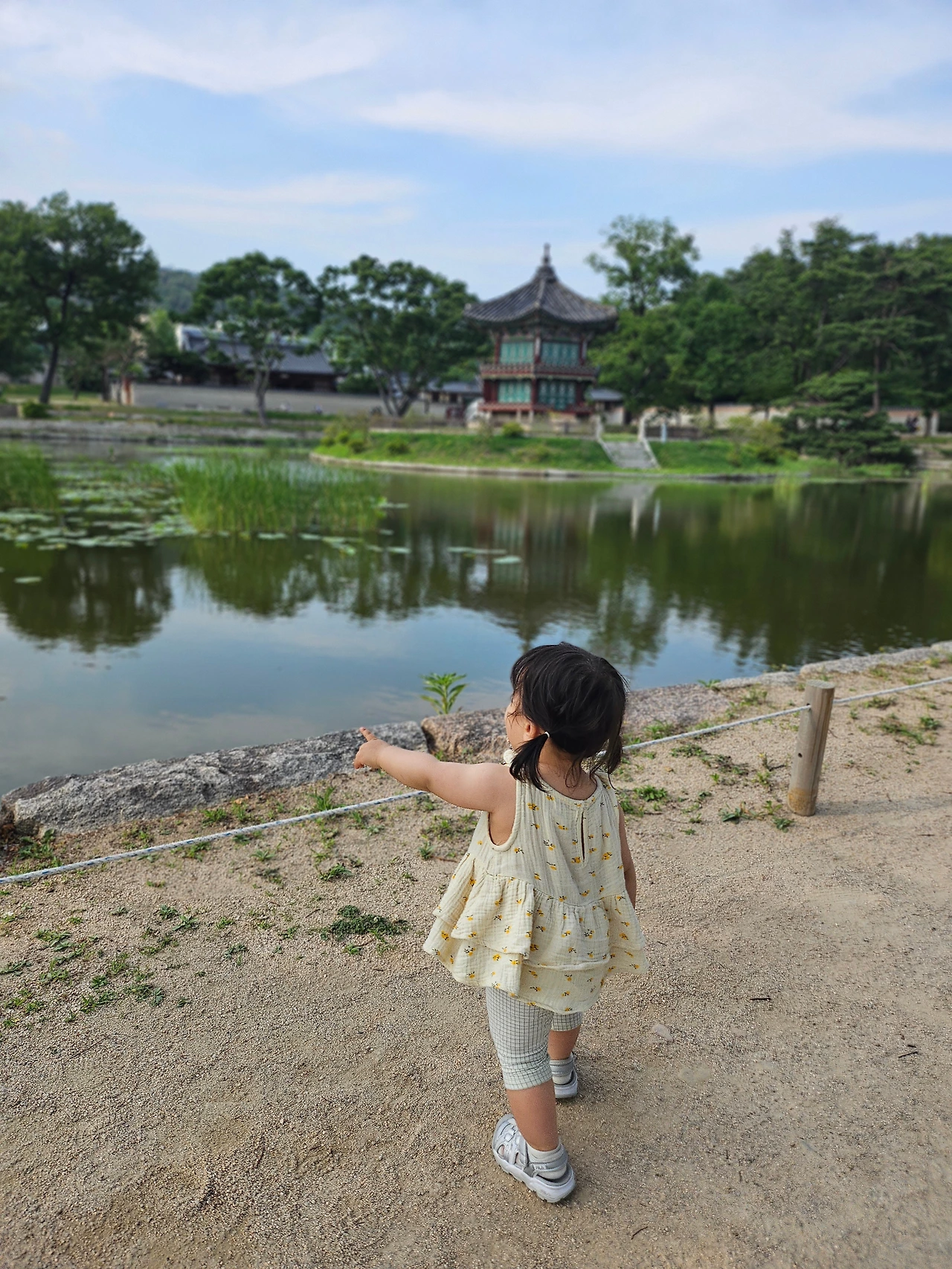 날씨도 점점 무더워지고 있었다. '날이 좋다'라는 표현을 쓰는 기간이 점점 줄어들고 있어 하루라도 함께 좋은 날을 누리기 위해 주말마다 밖으로 나갔다. 처음엔 덕수궁을 가려고 했으나 아기 밥과 우리 밥을 동시에 해결하기 위해 식당을 찾아보고 결정한 곳으로 갔다. 하지만 누군가 '대관'을 하면서 일이 조금씩 꼬였다. 가족 모두가 늦은 시간에 식사를 끝내고 인근 경복궁으로 갔다. 때마침 행사를 하고 있어 가족과 구경온 사람들도 많고 외국 관광객도 많았다. 조금 늦게 들어가 이미 좋은 자리는 없고 햇빛은 뜨거워 행사 관람은 하지 않고 다른 곳을 구경하기로 했다. 행사 덕분이었을까! 다른 곳엔 사람이 없어 구경하기 좋았다. 좋은 곳에서 사진도 찍고 마음껏 뛰어다닐 수도 있었다. 모든 곳이 아기가 놀기에 적당했다. 아빠의 체력 이슈로 오랜 시간 머물지는 못했지만 만족스러운 외출이었다. 지금보다 더 크면 아기랑 다시 올 곳 중 한 곳. 그땐 지금보다 더 성장해서 함께 보며 이야기할 것들이 더 많아지겠지...