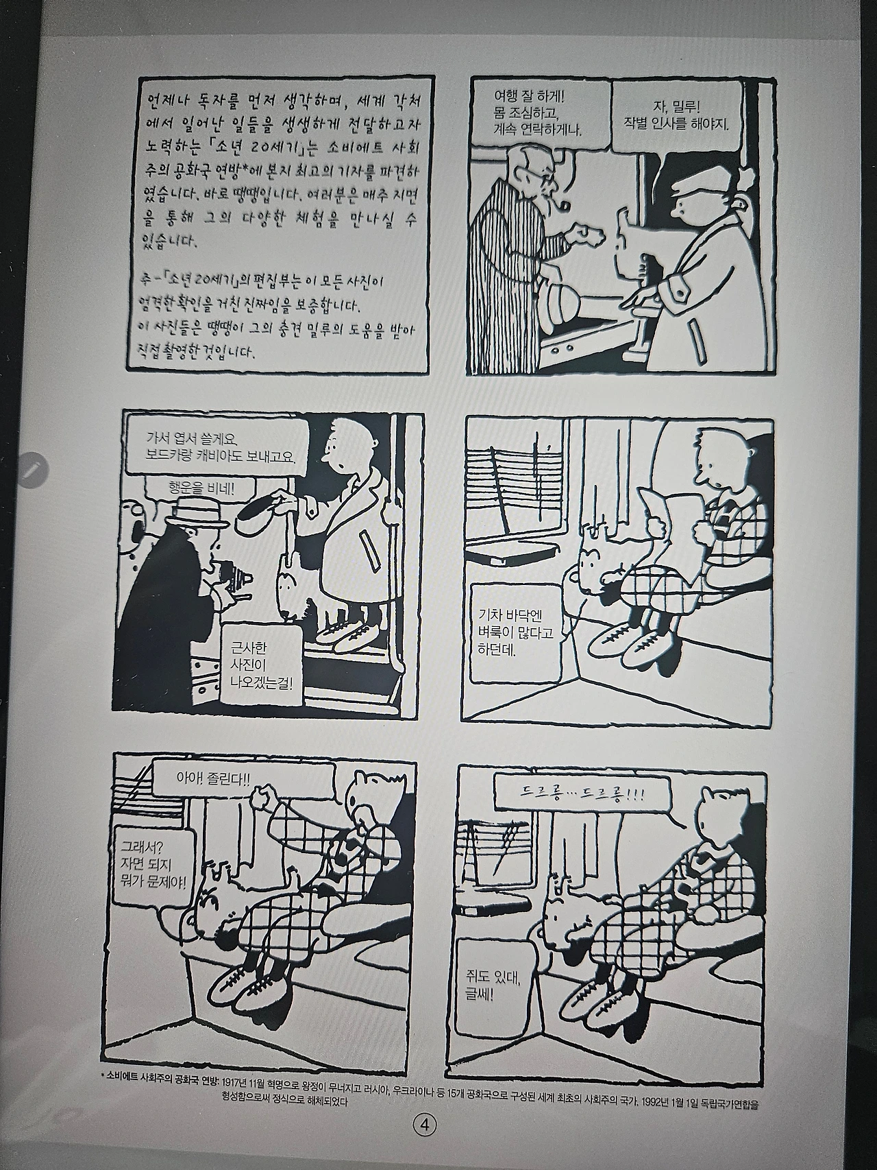 '땡땡의 모험'은 1929년 1월 어린이 잡지 '소년 20세기' 속 '소비에트에 간 땡땡'에서 시작했다.